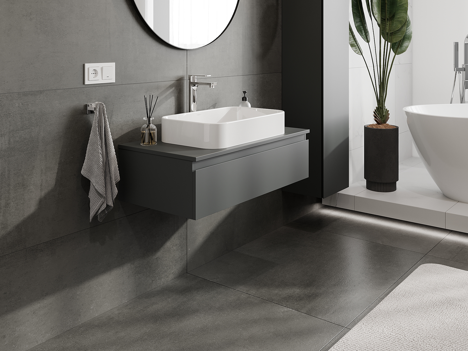 Mexen Orio Badezimmerschrank unter Waschbecken 90 cm, 1 Schublade, matt Graphit - 91A10-09023-1-BF66