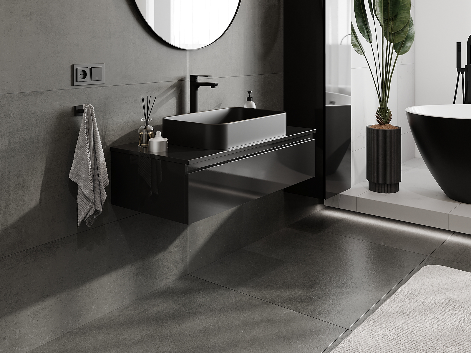 Unsere modularen Badezimmermöbel können in verschiedenen Farbkonfigurationen miteinander kombiniert werden, wodurch eine vollständige Personalisierung ermöglicht wird. Man kann sowohl das Aussehen als auch die Funktionen der einzelnen Elemente auswählen, was es erlaubt, die Möbel an eigene stilistische und funktionale Vorlieben anzupassen.