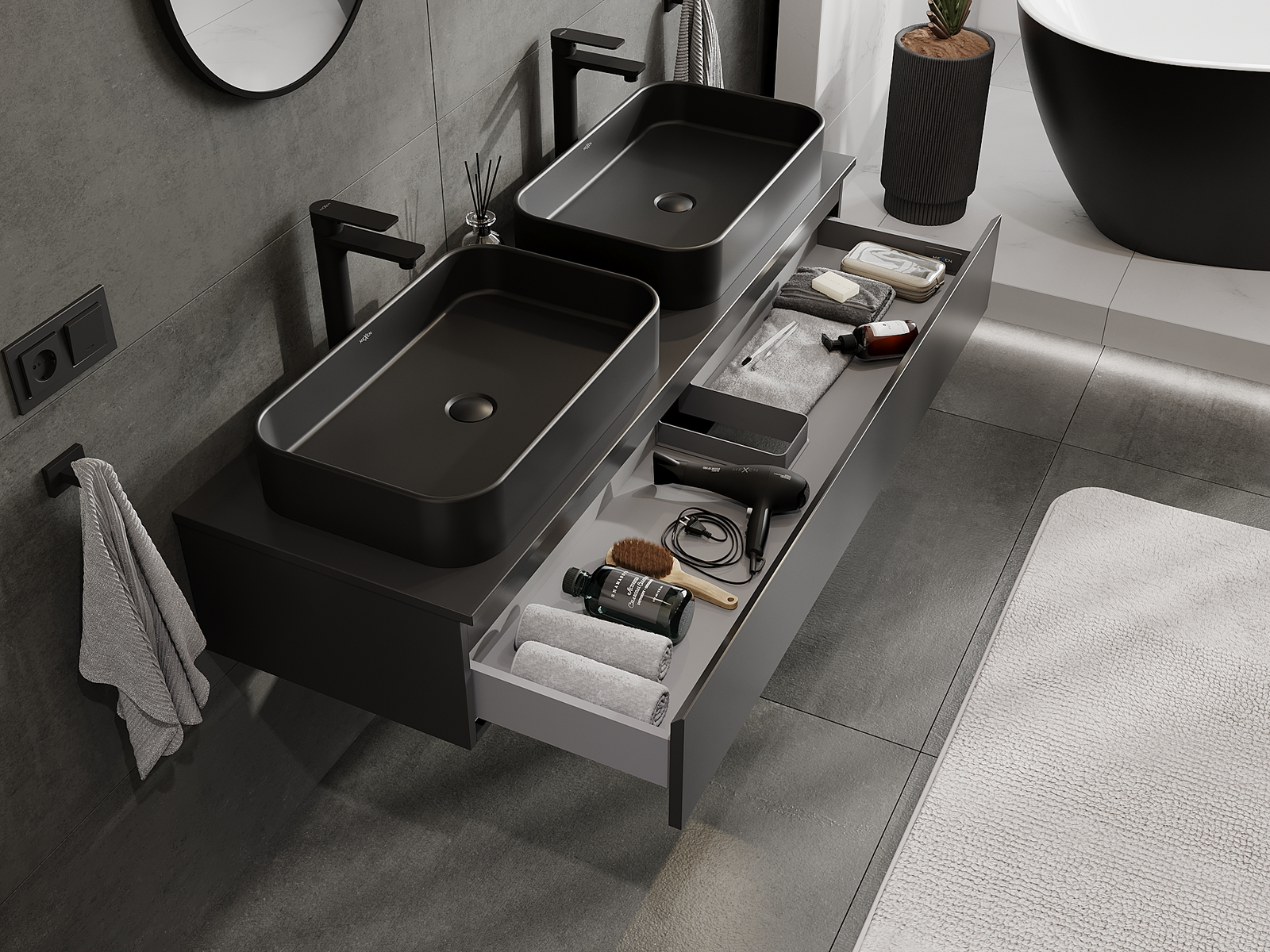 Mexen Orio Badezimmerschrank unter Waschbecken 140 cm, 1 Schublade, schwarz matt - 91A10-14023-1-BF71
