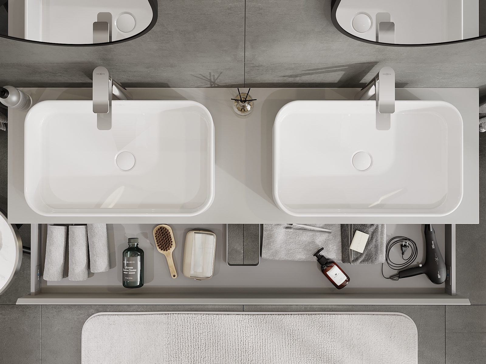 Mexen Orio Badezimmerunterschrank 160 cm, 1 Schublade, grau matt - 91A10-16023-1-BF62