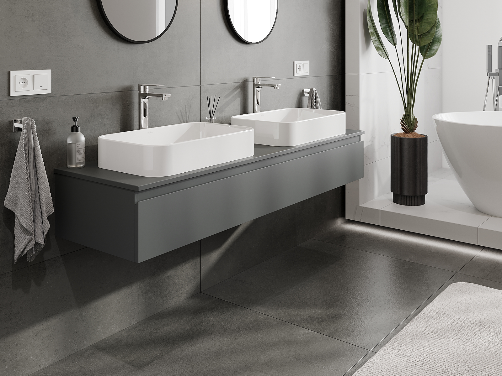 Mexen Orio Badezimmerschrank für Waschbecken 160 cm, 1 Schublade, Graphit matt - 91A10-16023-1-BF66