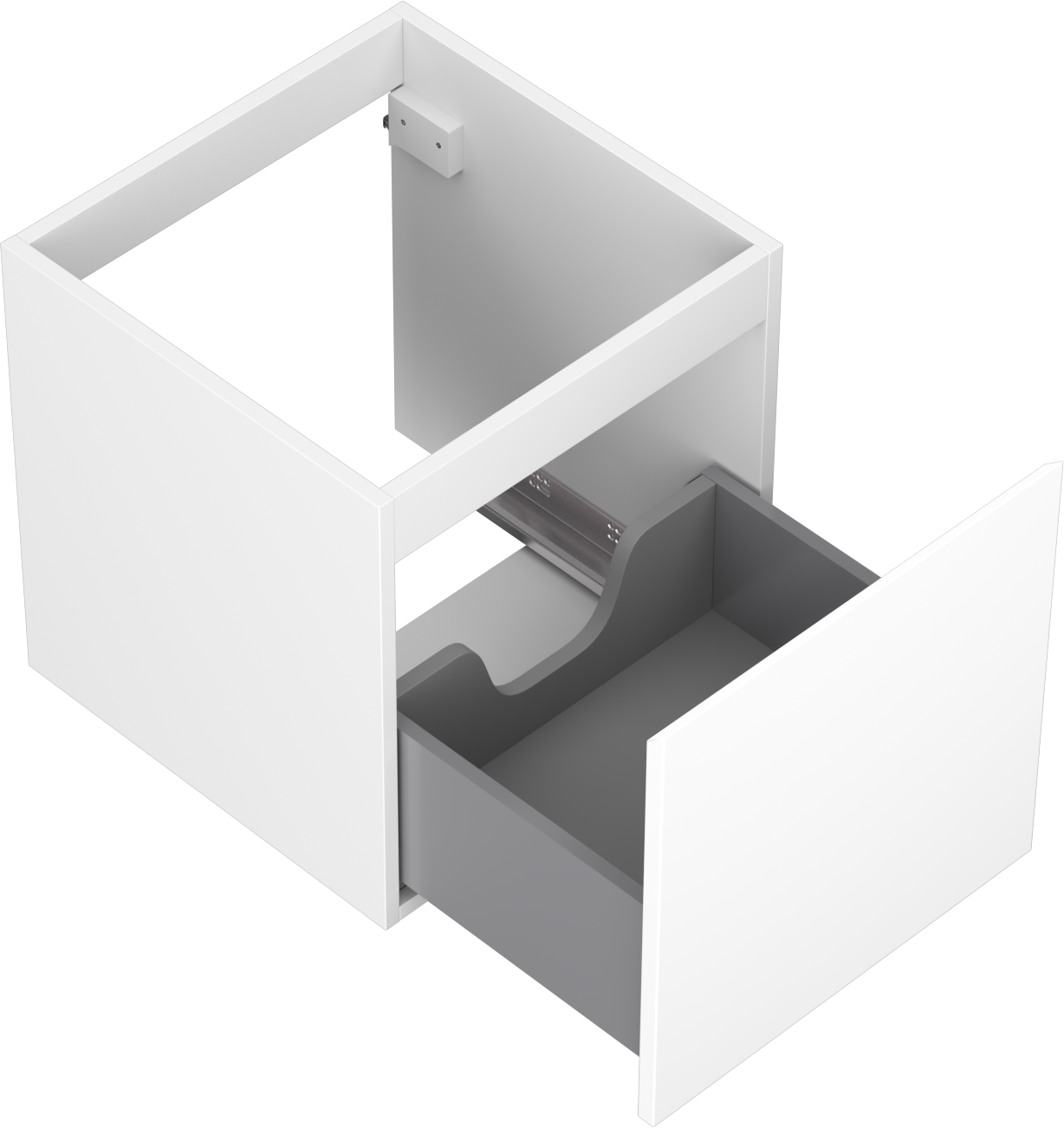 Der Ausschnitt in der Schublade ist für die Aufnahme eines Siphons ausgelegt, der für die Installation von Waschbecken unerlässlich ist. Dadurch kann das Möbelstück voll funktionsfähig installiert werden, ohne dass für die Installation Schubladenplatz geopfert werden muss.