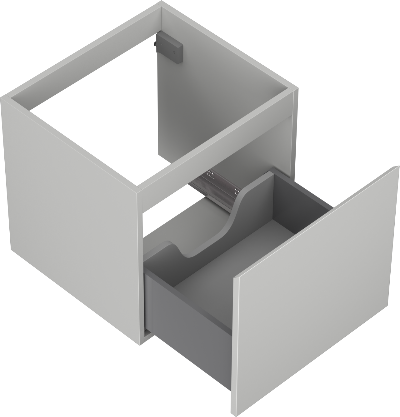 Der Ausschnitt in der Schublade ist so gestaltet, dass er den Siphon aufnehmen kann, der für Waschbeckeninstallationen erforderlich ist. Dadurch kann das Möbelstück voll funktionsfähig montiert werden, ohne auf den Platz in der Schublade zugunsten der Installation verzichten zu müssen.