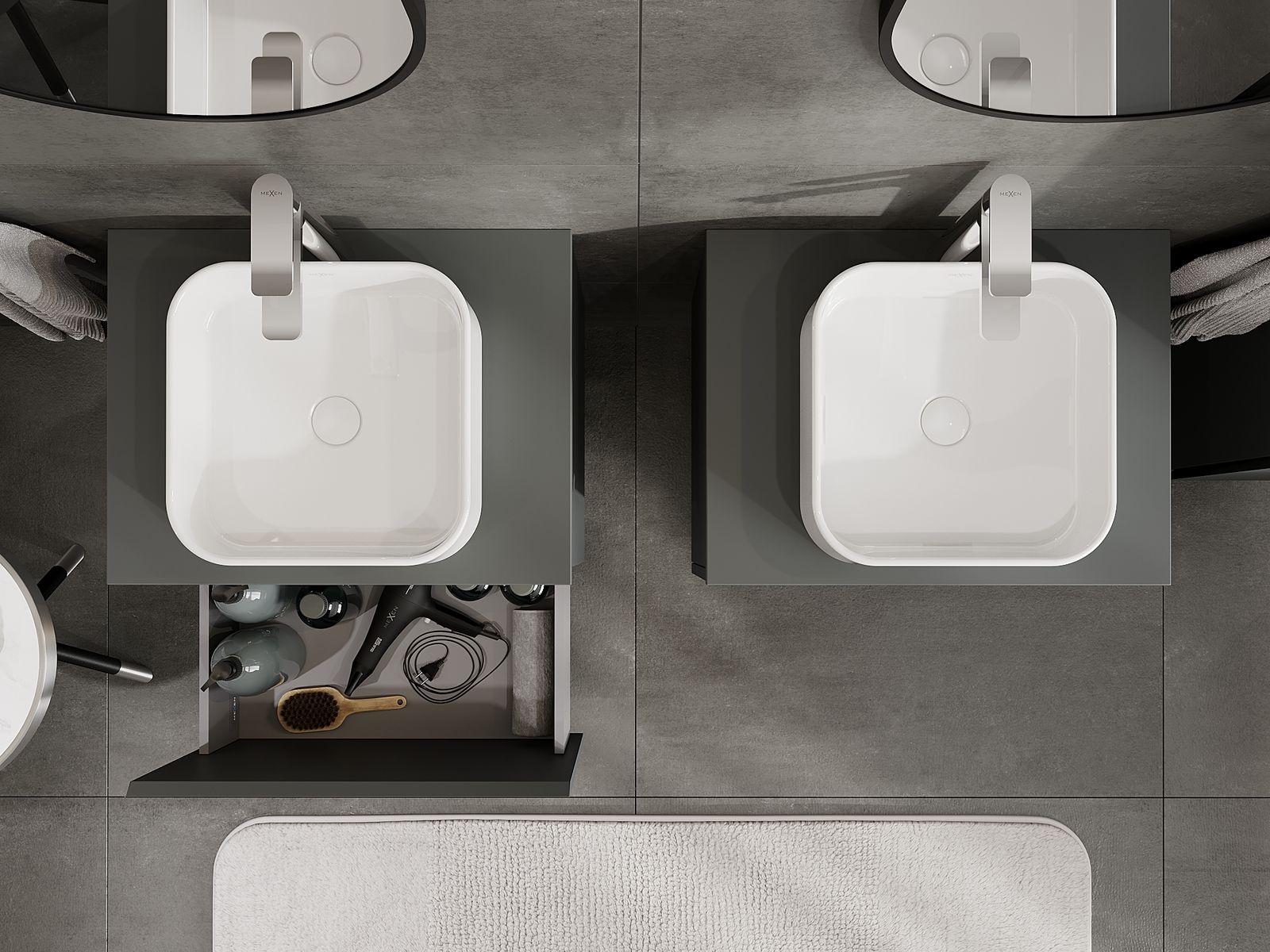 Mexen Orio Badezimmerschrank für Waschbecken 60 cm, 1 Schublade, Graphit matt - 91A10-06047-1-BF66
