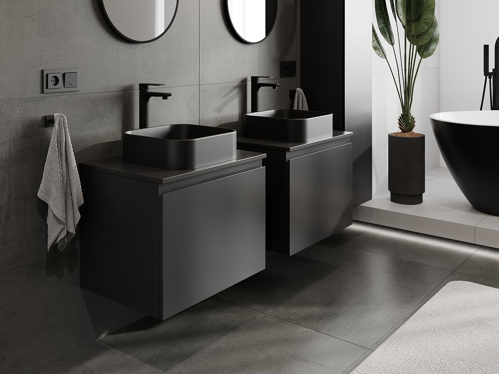 Unsere modularen Badezimmermöbel können in verschiedenen Farbkonfigurationen miteinander kombiniert werden, wodurch eine vollständige Personalisierung ermöglicht wird. Man kann sowohl das Aussehen als auch die Funktionen der einzelnen Elemente auswählen, was es erlaubt, die Möbel an eigene stilistische und funktionale Vorlieben anzupassen.