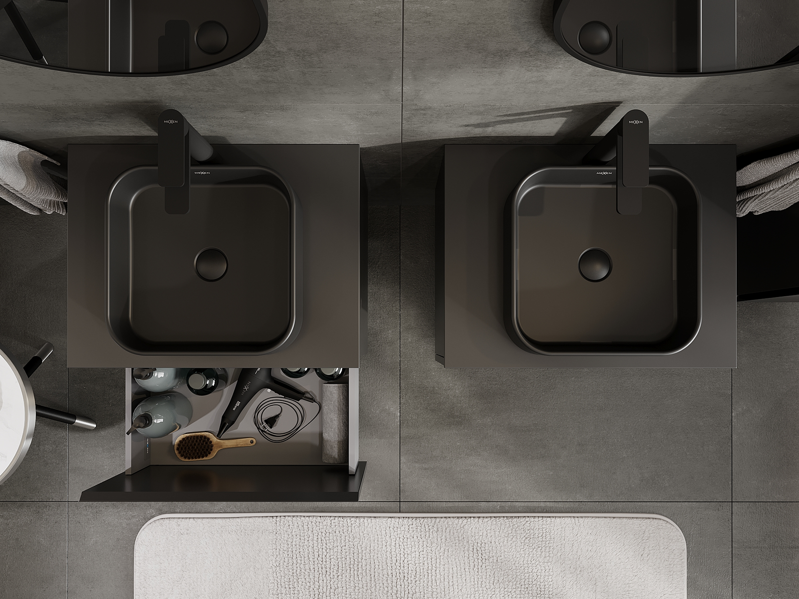 Mexen Orio Badezimmerschrank für Waschtisch 60 cm, 1 Schublade, schwarz matt - 91A10-06047-1-BF71