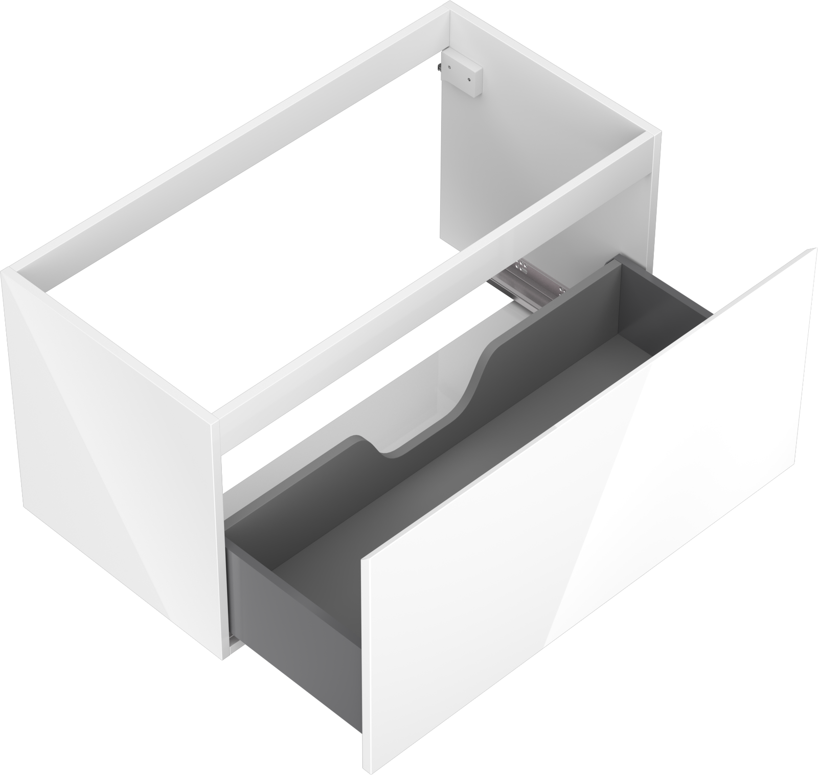 Der Ausschnitt in der Schublade ist für die Aufnahme eines Siphons ausgelegt, der für die Installation von Waschbecken unerlässlich ist. Dadurch kann das Möbelstück voll funktionsfähig installiert werden, ohne dass für die Installation Schubladenplatz geopfert werden muss.