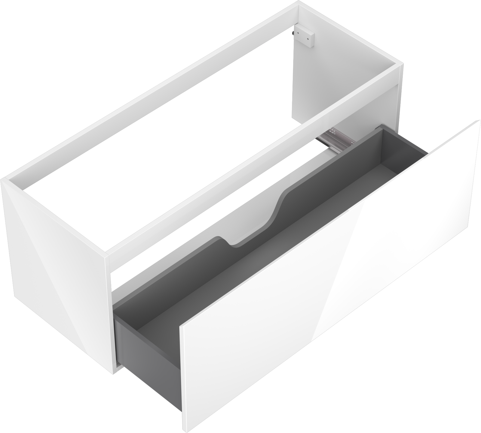 Der Ausschnitt in der Schublade ist für die Aufnahme eines Siphons ausgelegt, der für die Installation von Waschbecken unerlässlich ist. Dadurch kann das Möbelstück voll funktionsfähig installiert werden, ohne dass für die Installation Schubladenplatz geopfert werden muss.