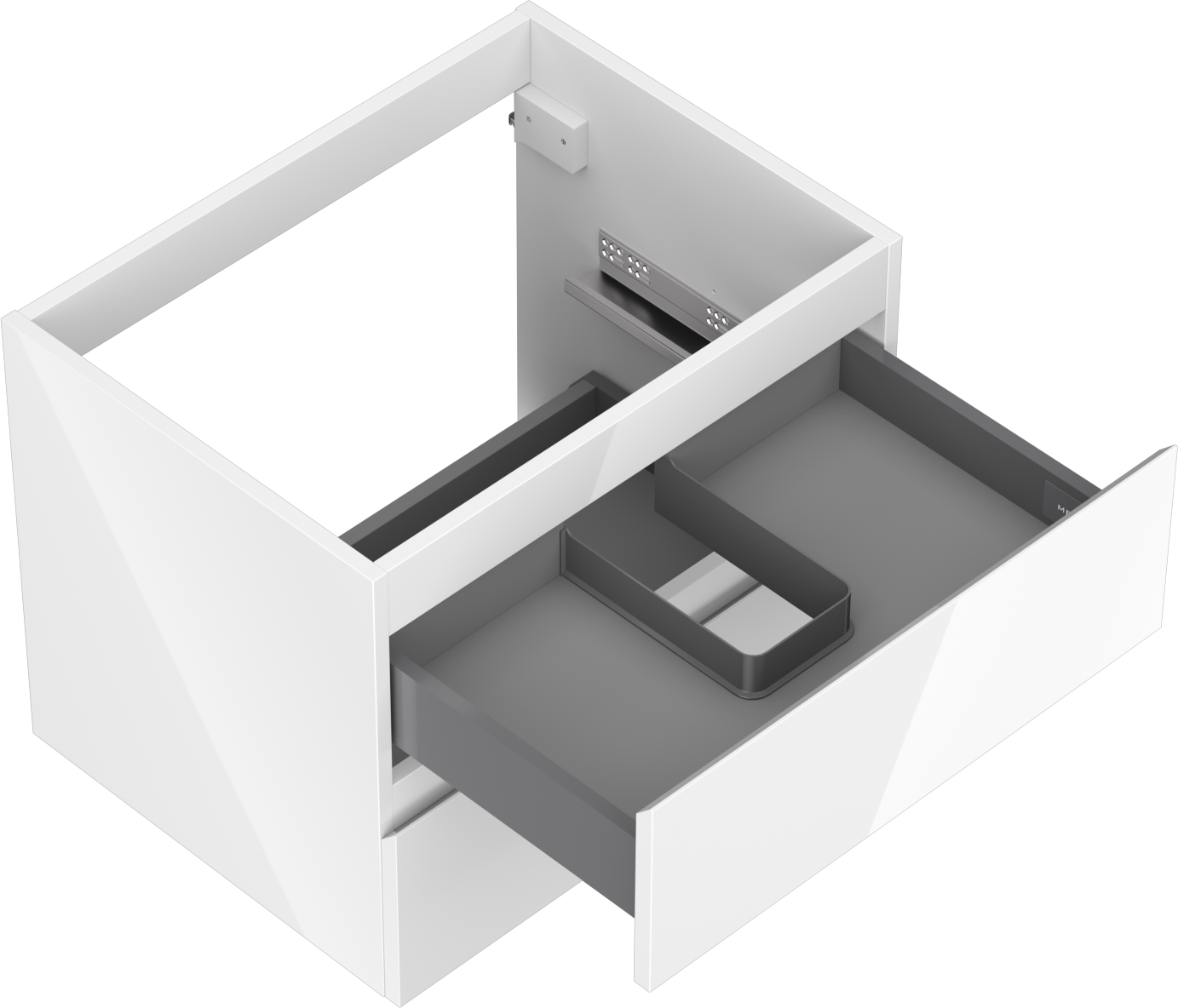 Der Ausschnitt in der Schublade ist für die Aufnahme eines Siphons ausgelegt, der für die Installation von Waschbecken unerlässlich ist. Dadurch kann das Möbelstück voll funktionsfähig installiert werden, ohne dass für die Installation Schubladenplatz geopfert werden muss.
