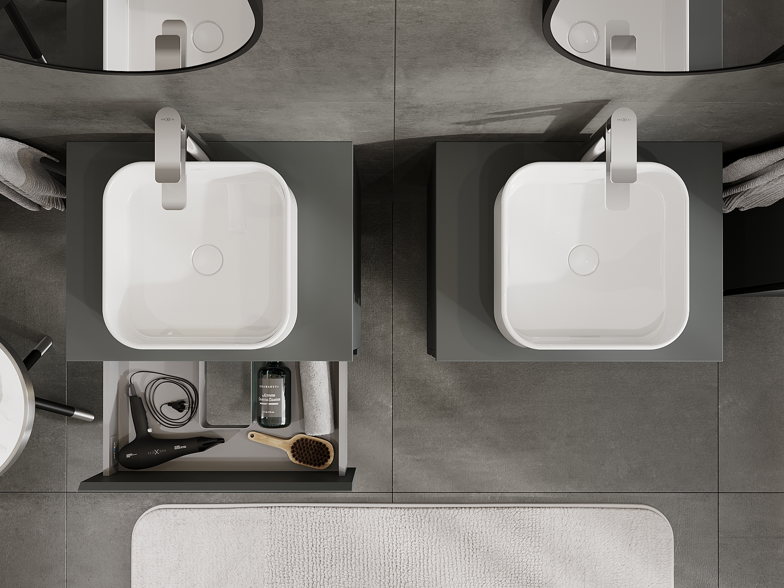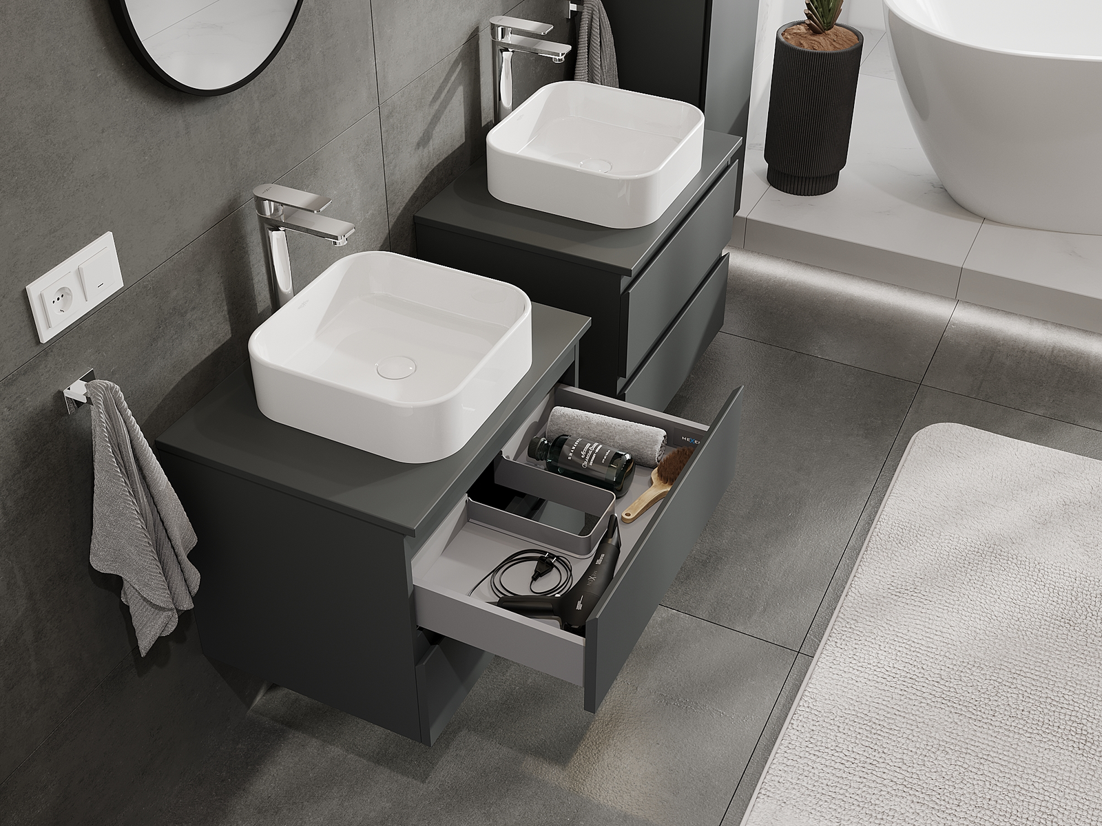 Mexen Orio Badezimmerschrank für Waschbecken 60 cm, 2 Schubladen, Graphit Matt - 91A10-06047-2-BFF66