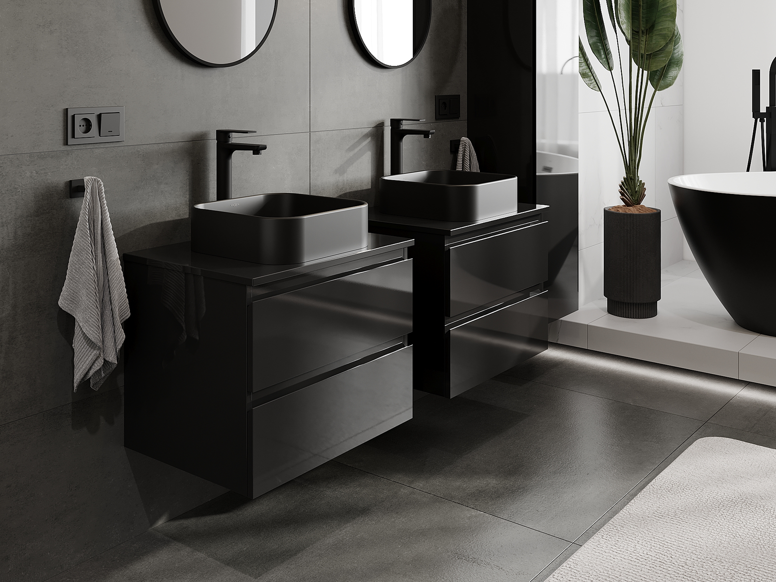Mexen Orio Badezimmerschrank für Waschbecken 60 cm, 2 Schubladen, Schwarz Glanz - 91A10-06047-2-BFF70