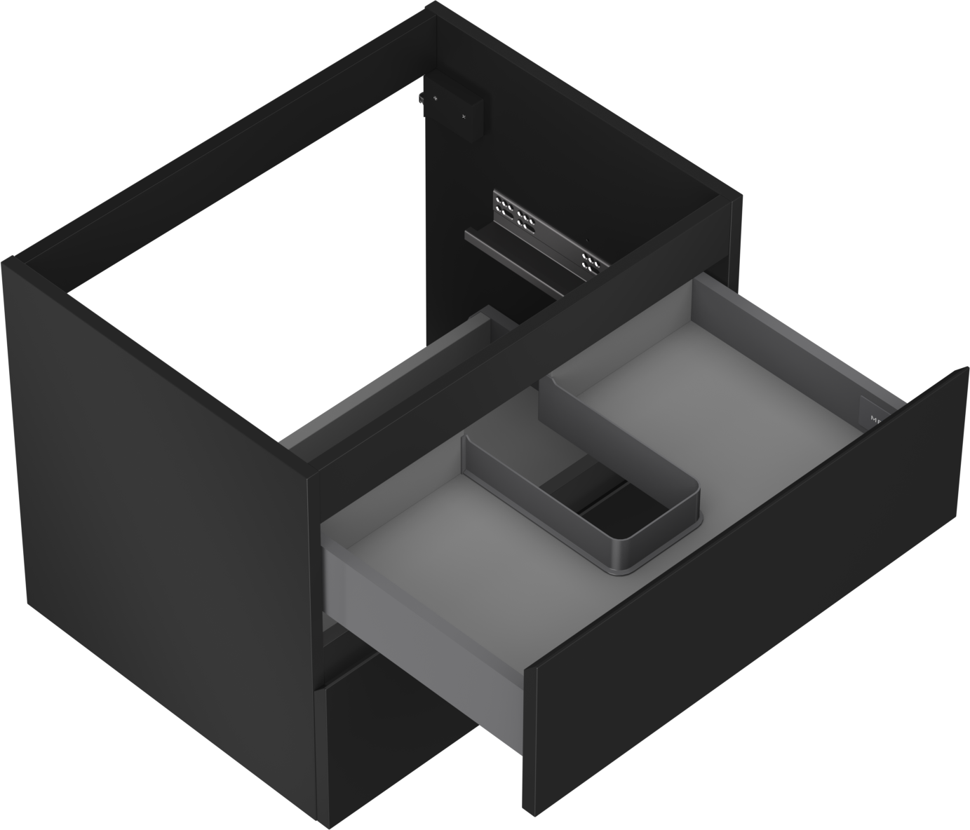 Der Ausschnitt in der Schublade ist für die Aufnahme eines Siphons ausgelegt, der für die Installation von Waschbecken unerlässlich ist. Dadurch kann das Möbelstück voll funktionsfähig installiert werden, ohne dass für die Installation Schubladenplatz geopfert werden muss.