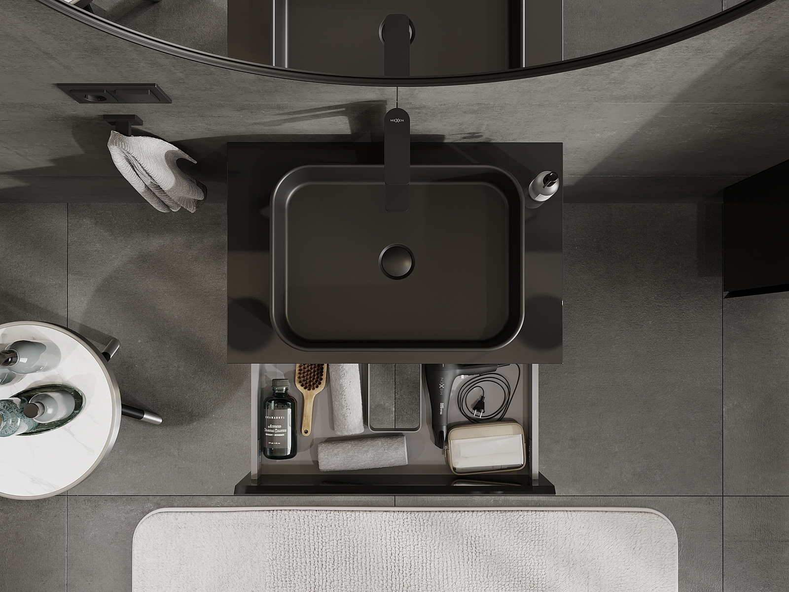 Mexen Orio Badezimmerschrank für Waschbecken 70 cm, 2 Schubladen, schwarz glänzend - 91A10-07047-2-BFF70