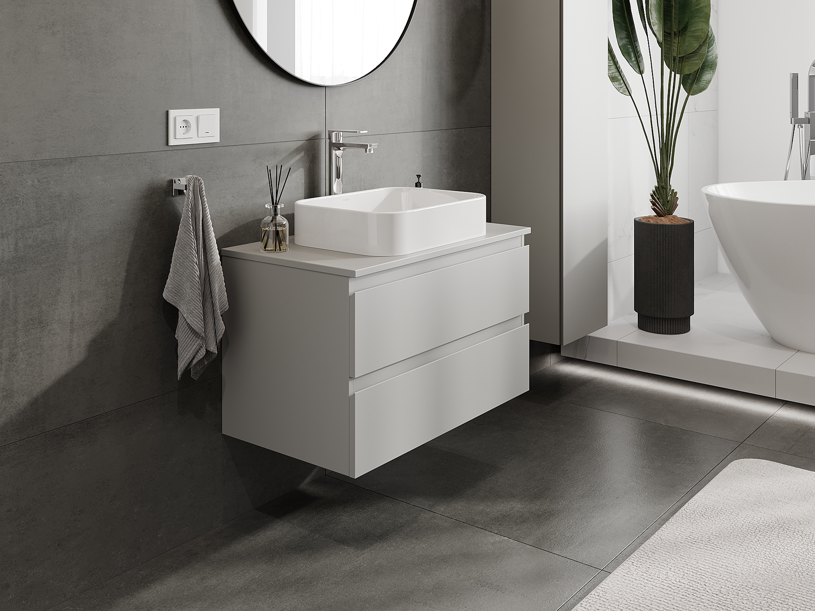 Mexen Orio Badezimmerschrank mit Waschbecken 80 cm, 2 Schubladen, Grau Matt - 91A10-08047-2-BFF62