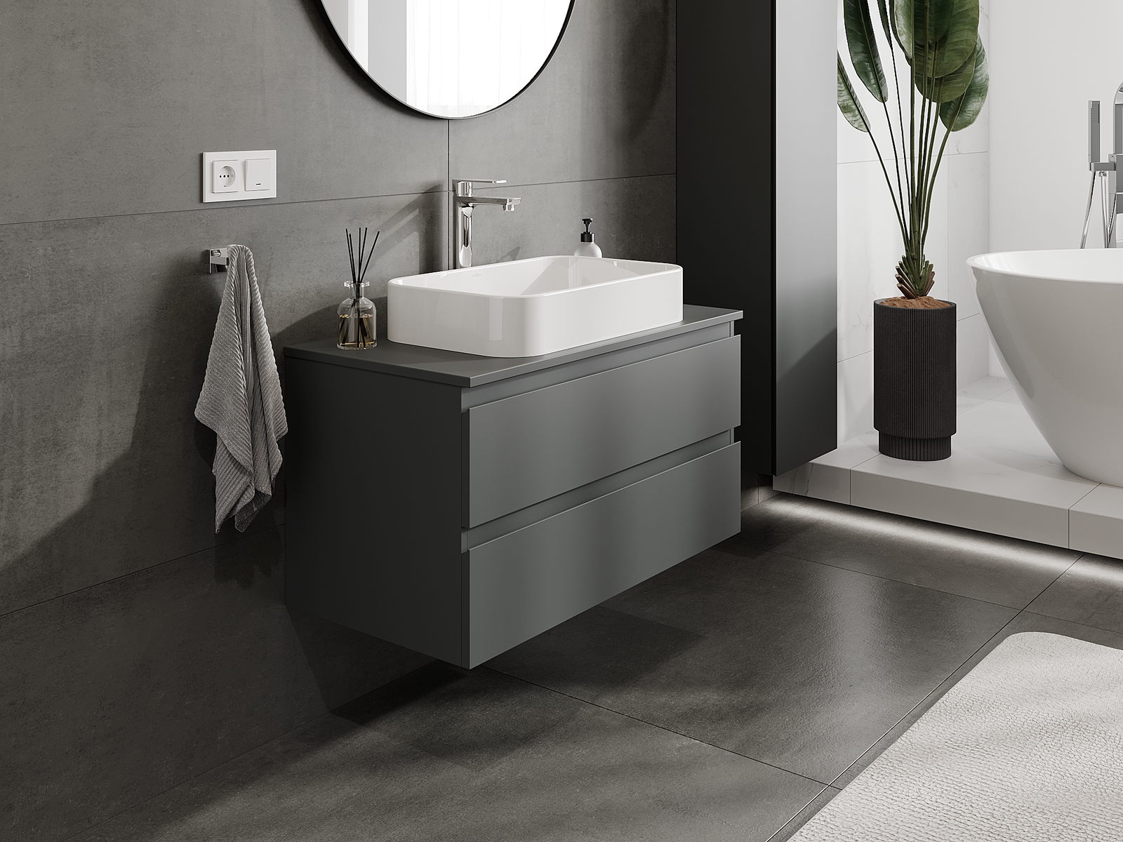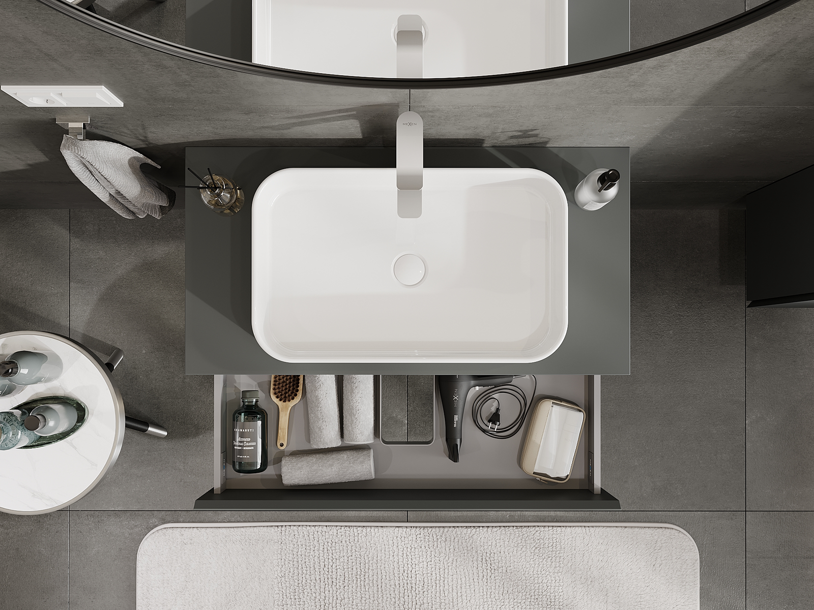 Mexen Orio Badezimmerschrank für Waschbecken 90 cm, 2 Schubladen, Graphit matt - 91A10-09047-2-BFF66