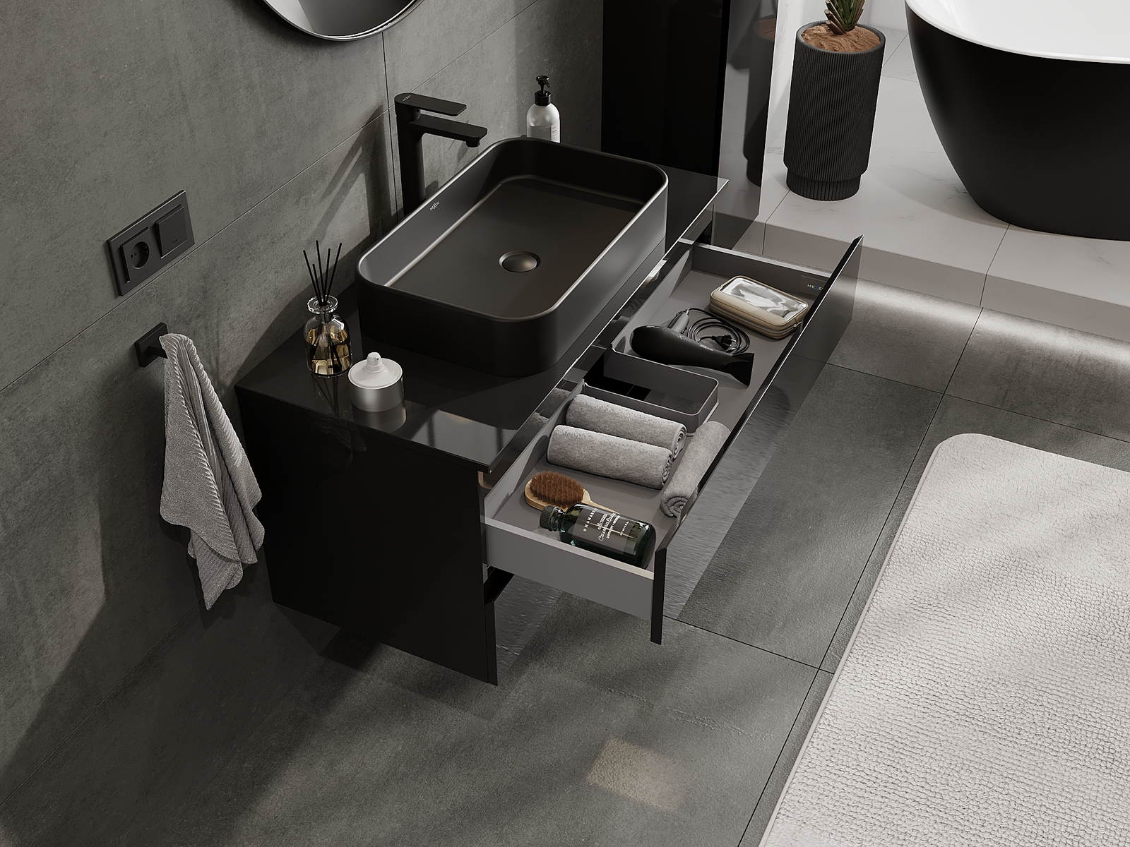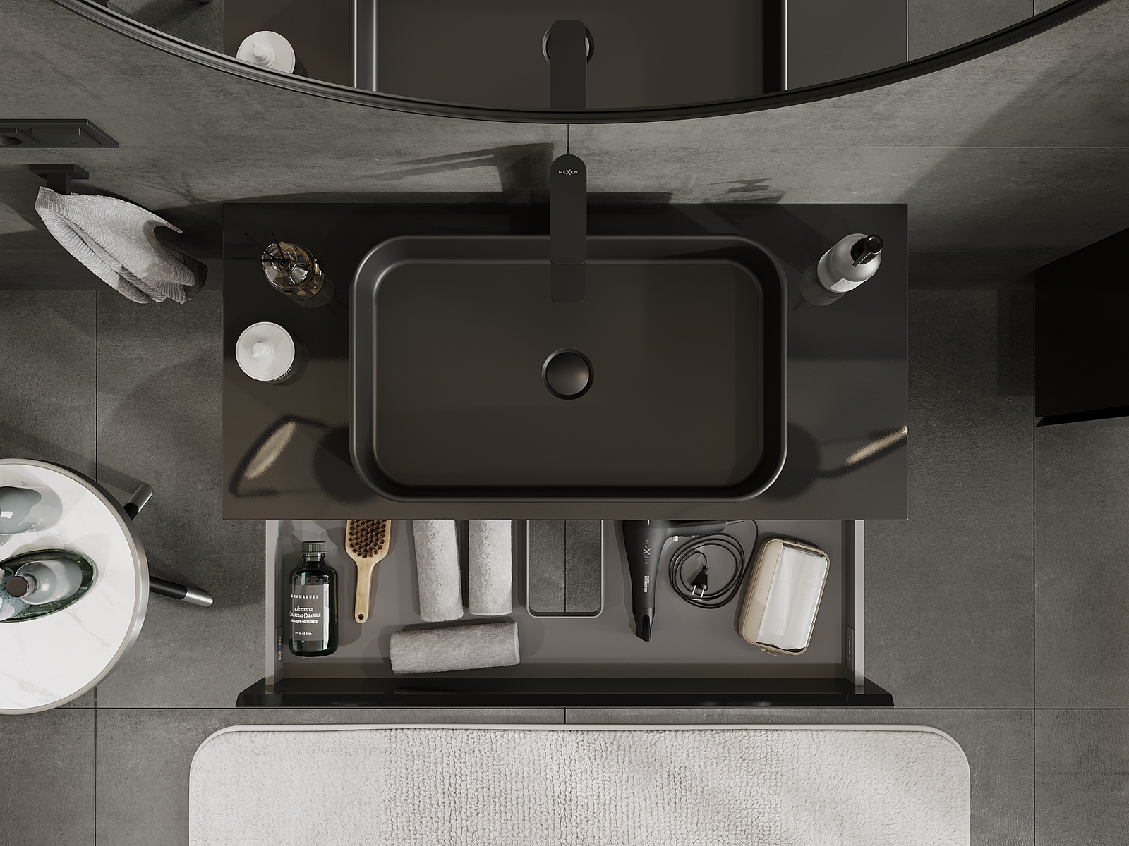 Mexen Orio Badezimmerschrank für Waschbecken 100 cm, 2 Schubladen, schwarz glänzend - 91A10-10047-2-BFF70