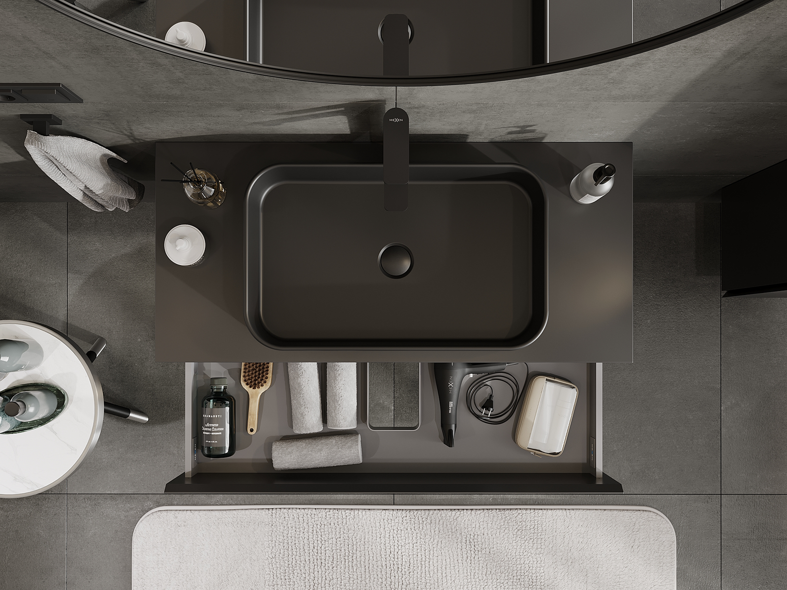 Mexen Orio Badezimmerschrank 100 cm, 2 Schubladen, schwarz matt - 91A10-10047-2-BFF71