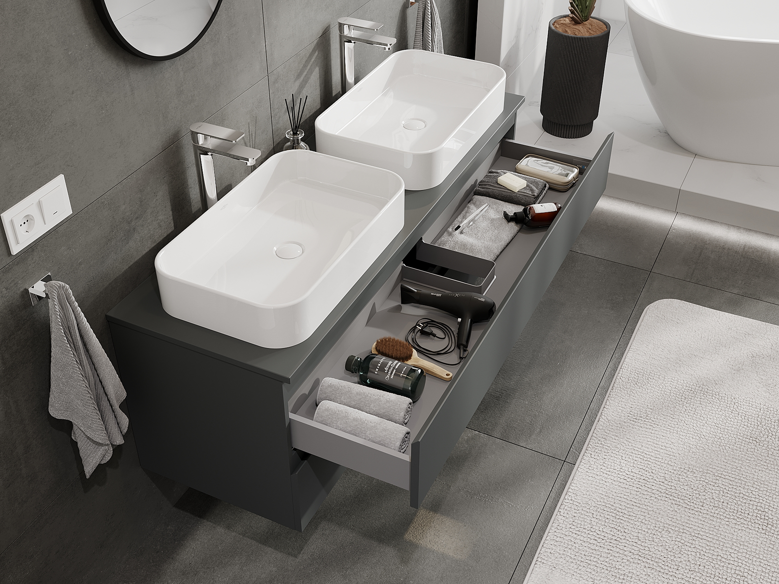 Mexen Orio Badezimmer-Unterschrank 140 cm, 2 Schubladen, matt grafit - 91A10-14047-2-BFF66