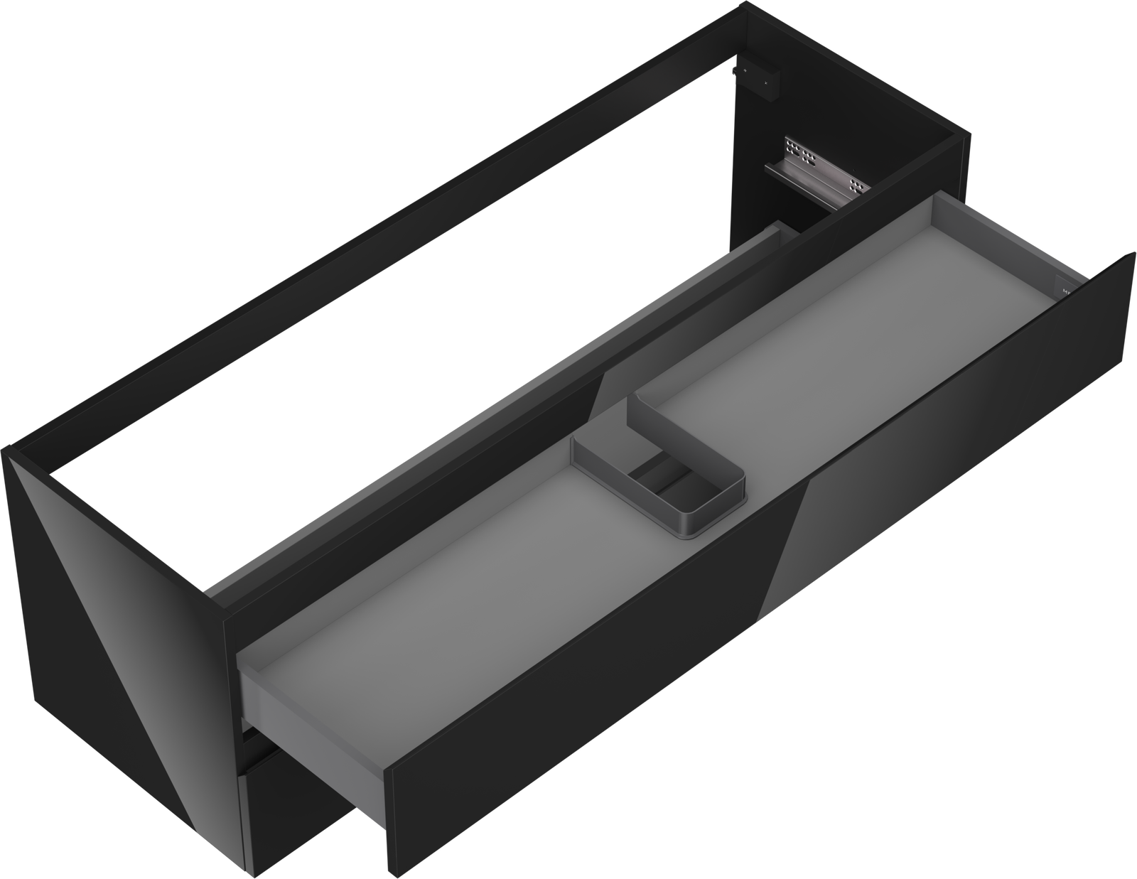 Der Ausschnitt in der Schublade ist für die Aufnahme eines Siphons ausgelegt, der für die Installation von Waschbecken unerlässlich ist. Dadurch kann das Möbelstück voll funktionsfähig installiert werden, ohne dass für die Installation Schubladenplatz geopfert werden muss.