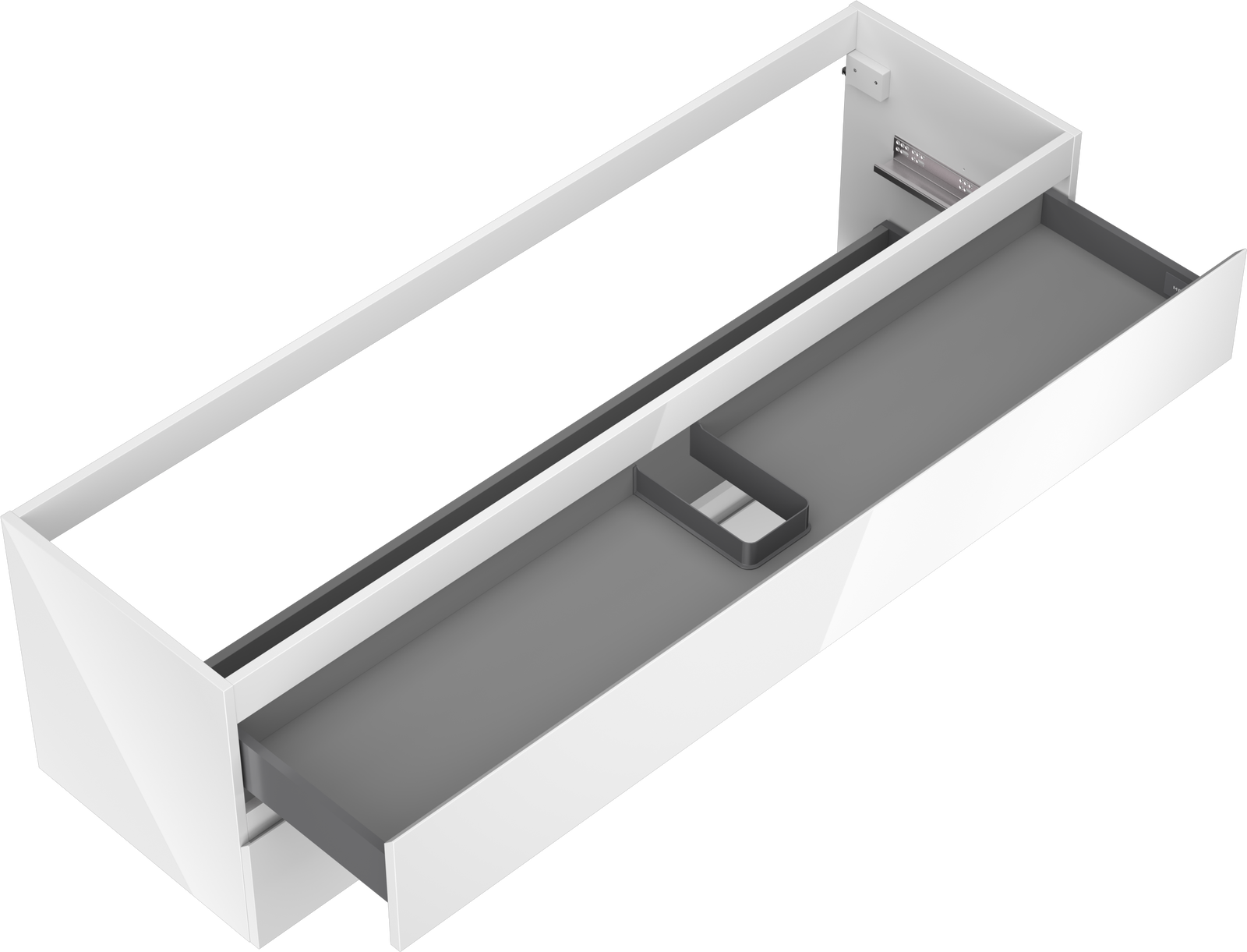 Der Ausschnitt in der Schublade ist für die Aufnahme eines Siphons ausgelegt, der für die Installation von Waschbecken unerlässlich ist. Dadurch kann das Möbelstück voll funktionsfähig installiert werden, ohne dass für die Installation Schubladenplatz geopfert werden muss.