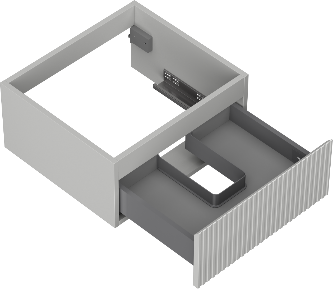 Der Ausschnitt in der Schublade ist für die Aufnahme eines Siphons ausgelegt, der für die Installation von Waschbecken unerlässlich ist. Dadurch kann das Möbelstück voll funktionsfähig installiert werden, ohne dass für die Installation Schubladenplatz geopfert werden muss.