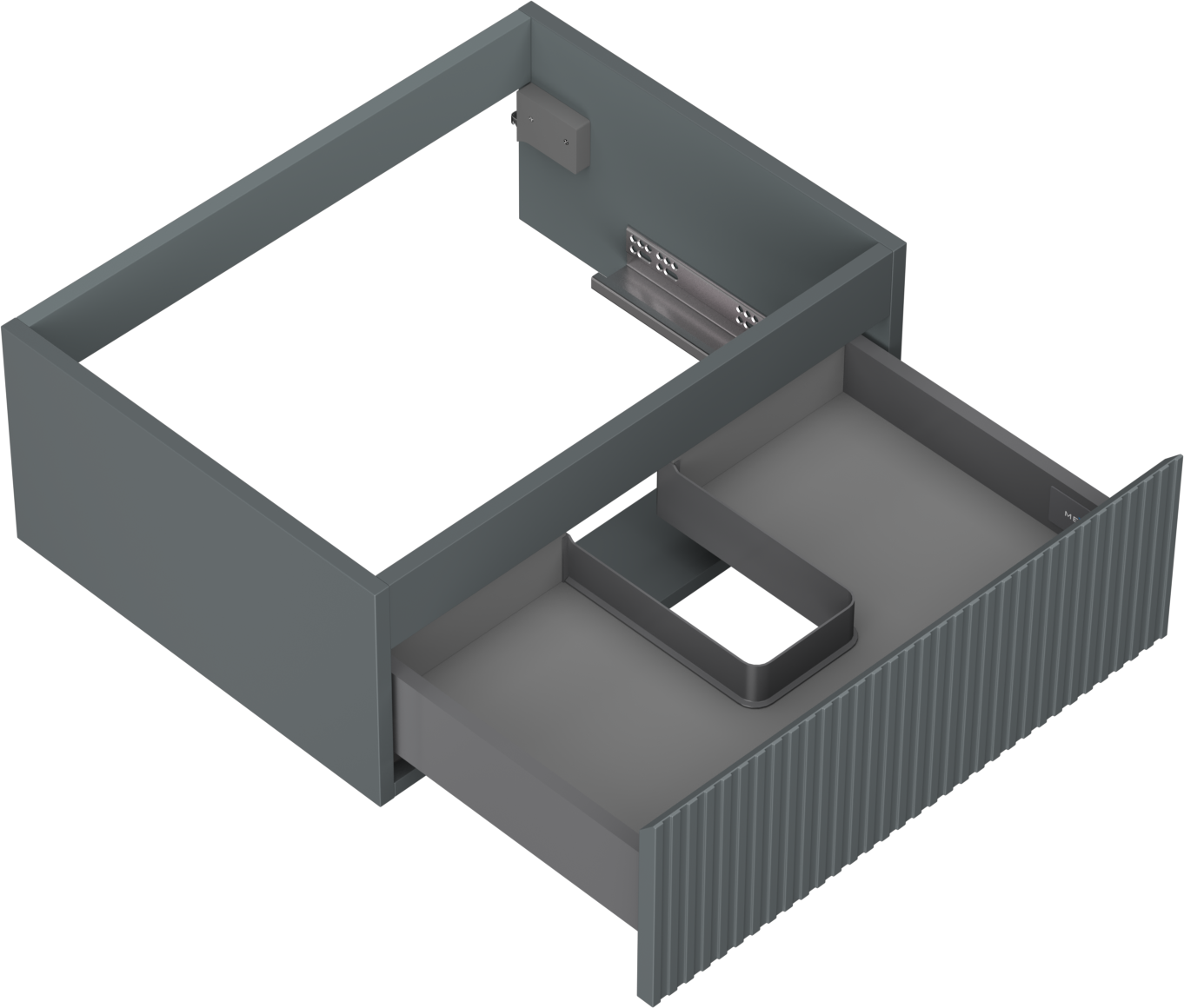 Der Ausschnitt in der Schublade ist für die Aufnahme eines Siphons ausgelegt, der für die Installation von Waschbecken unerlässlich ist. Dadurch kann das Möbelstück voll funktionsfähig installiert werden, ohne dass für die Installation Schubladenplatz geopfert werden muss.
