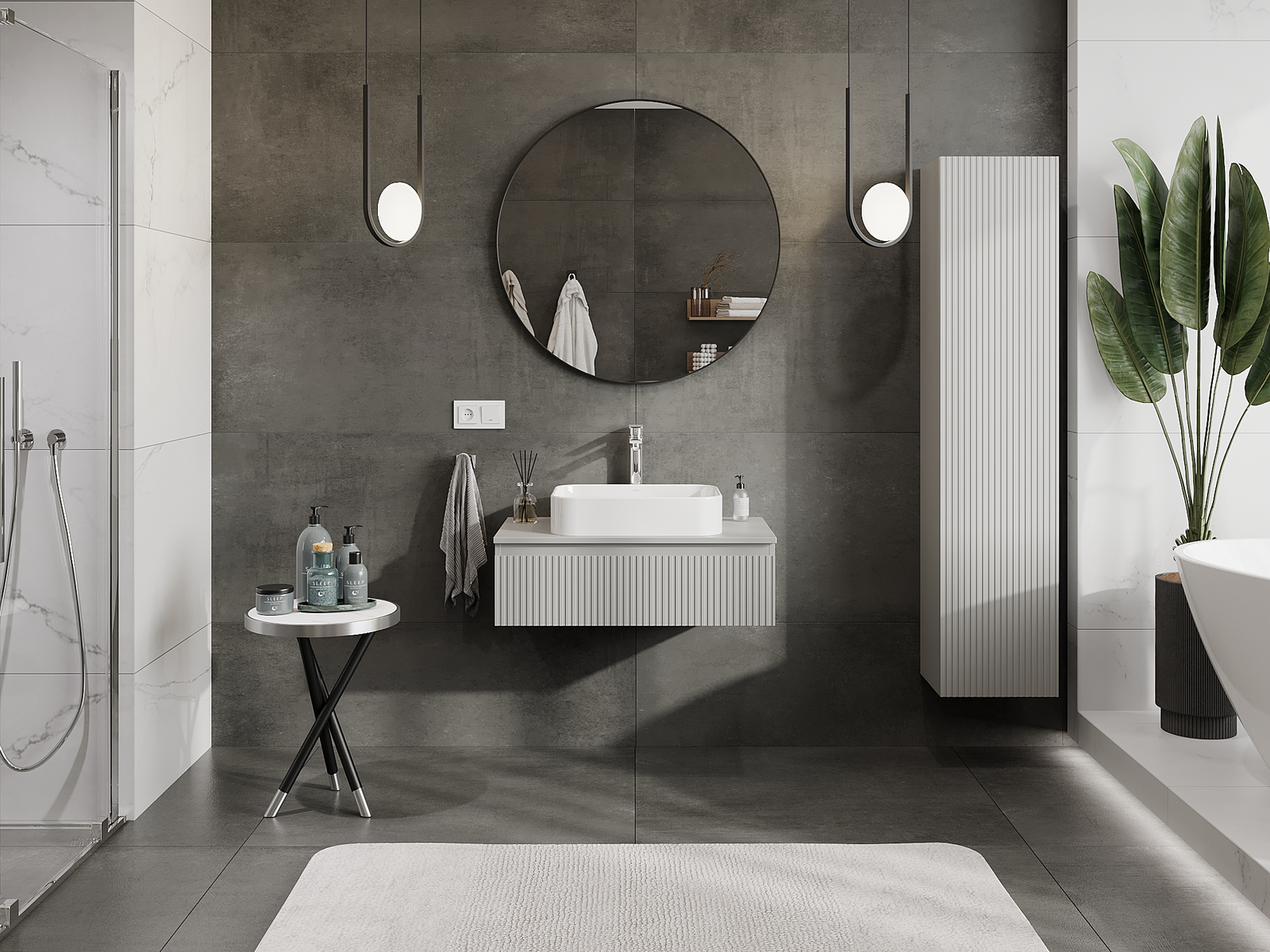 Mexen Rivel Badezimmer-Unterschrank 80 cm, 1 Schublade, geriffelt, grau matt - 91A20-08023-1-BF62