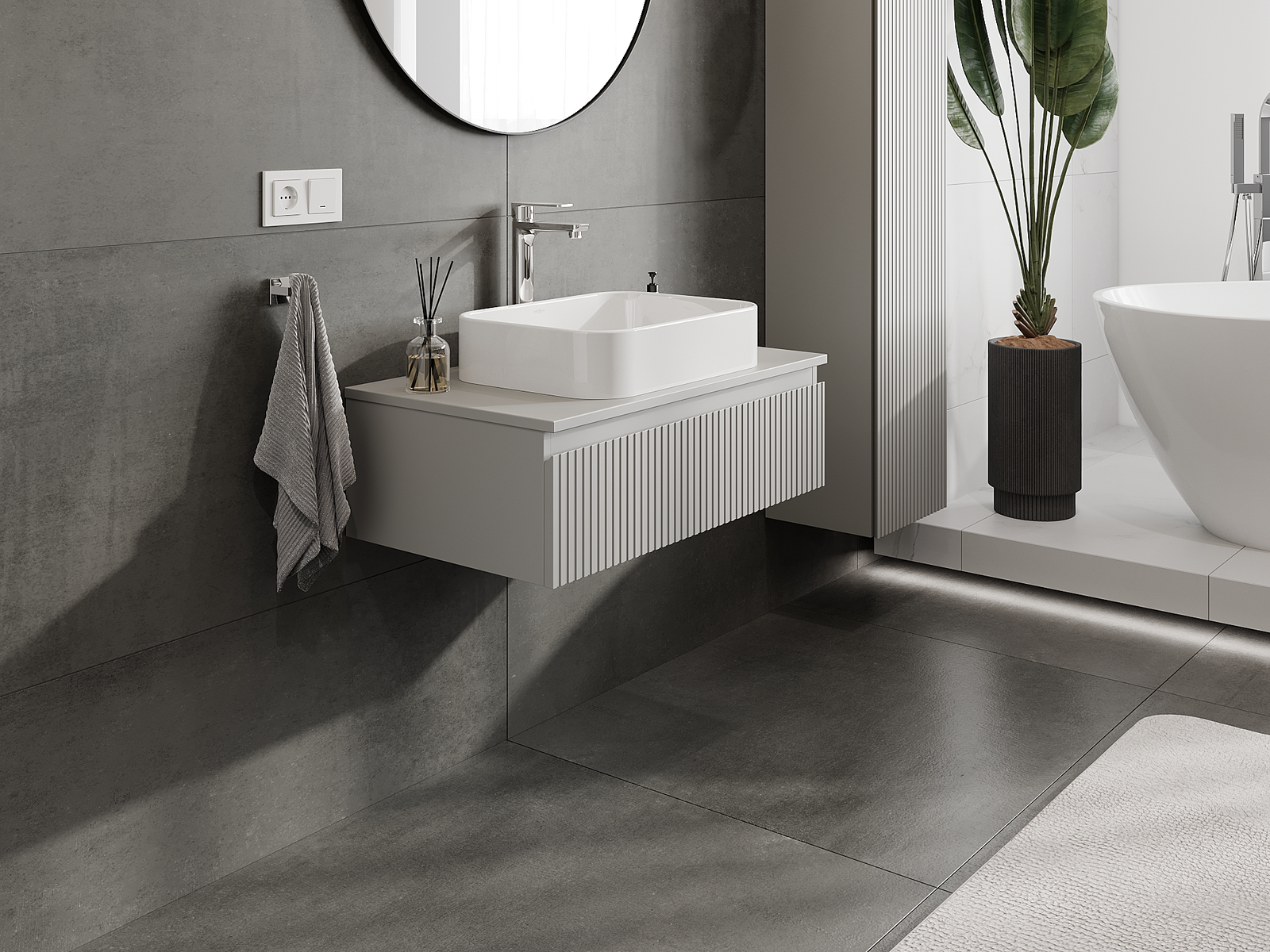 Unsere modularen Badezimmermöbel können in verschiedenen Farbkonfigurationen miteinander kombiniert werden, wodurch eine vollständige Personalisierung ermöglicht wird. Man kann sowohl das Aussehen als auch die Funktionen der einzelnen Elemente auswählen, was es erlaubt, die Möbel an eigene stilistische und funktionale Vorlieben anzupassen.