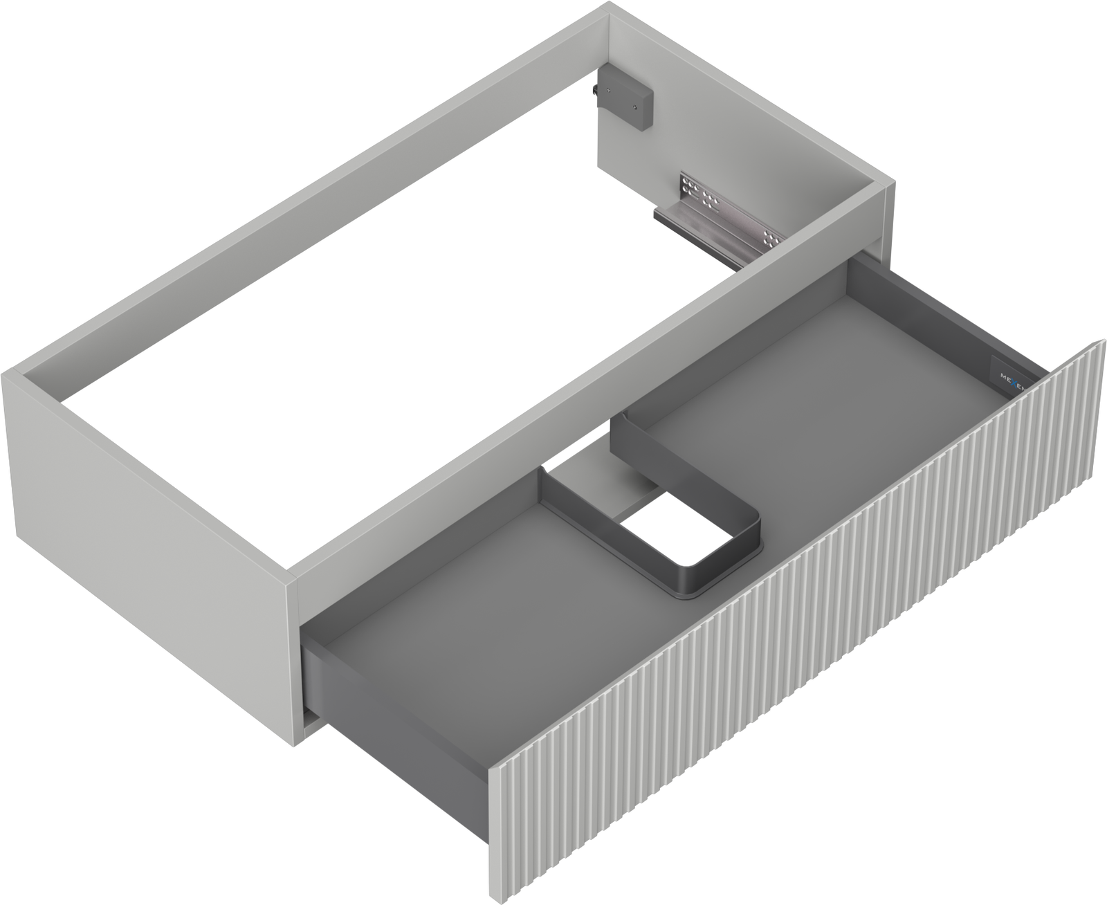 Der Ausschnitt in der Schublade ist für die Aufnahme eines Siphons ausgelegt, der für die Installation von Waschbecken unerlässlich ist. Dadurch kann das Möbelstück voll funktionsfähig installiert werden, ohne dass für die Installation Schubladenplatz geopfert werden muss.