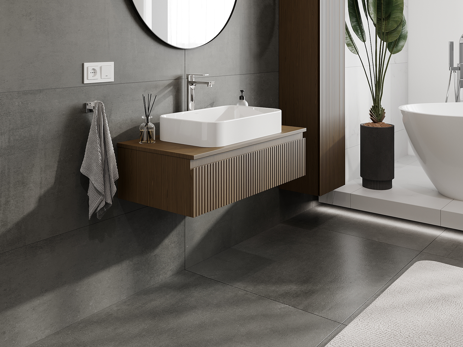 Unsere modularen Badezimmermöbel können in verschiedenen Farbkonfigurationen miteinander kombiniert werden, wodurch eine vollständige Personalisierung ermöglicht wird. Man kann sowohl das Aussehen als auch die Funktionen der einzelnen Elemente auswählen, was es erlaubt, die Möbel an eigene stilistische und funktionale Vorlieben anzupassen.
