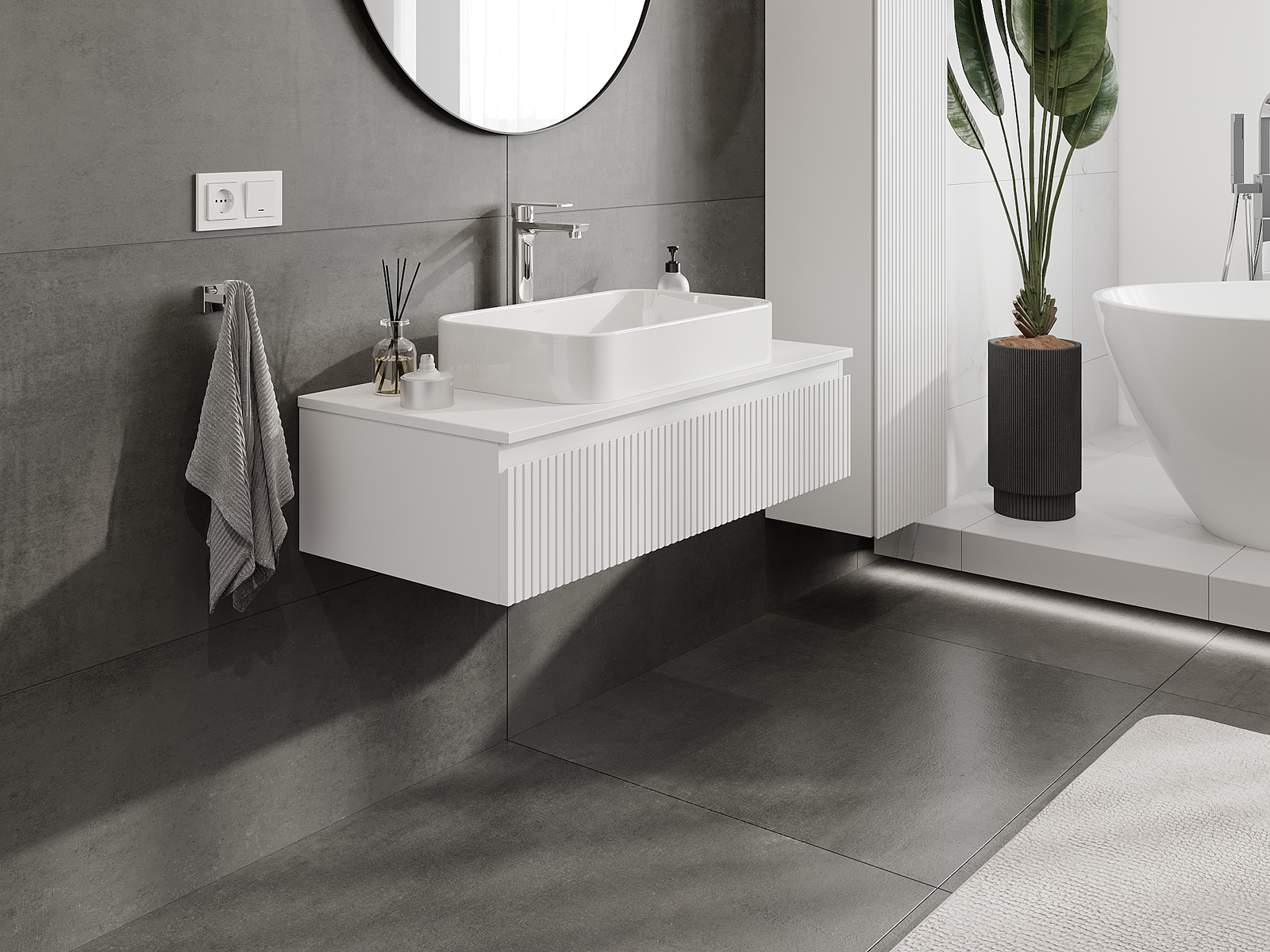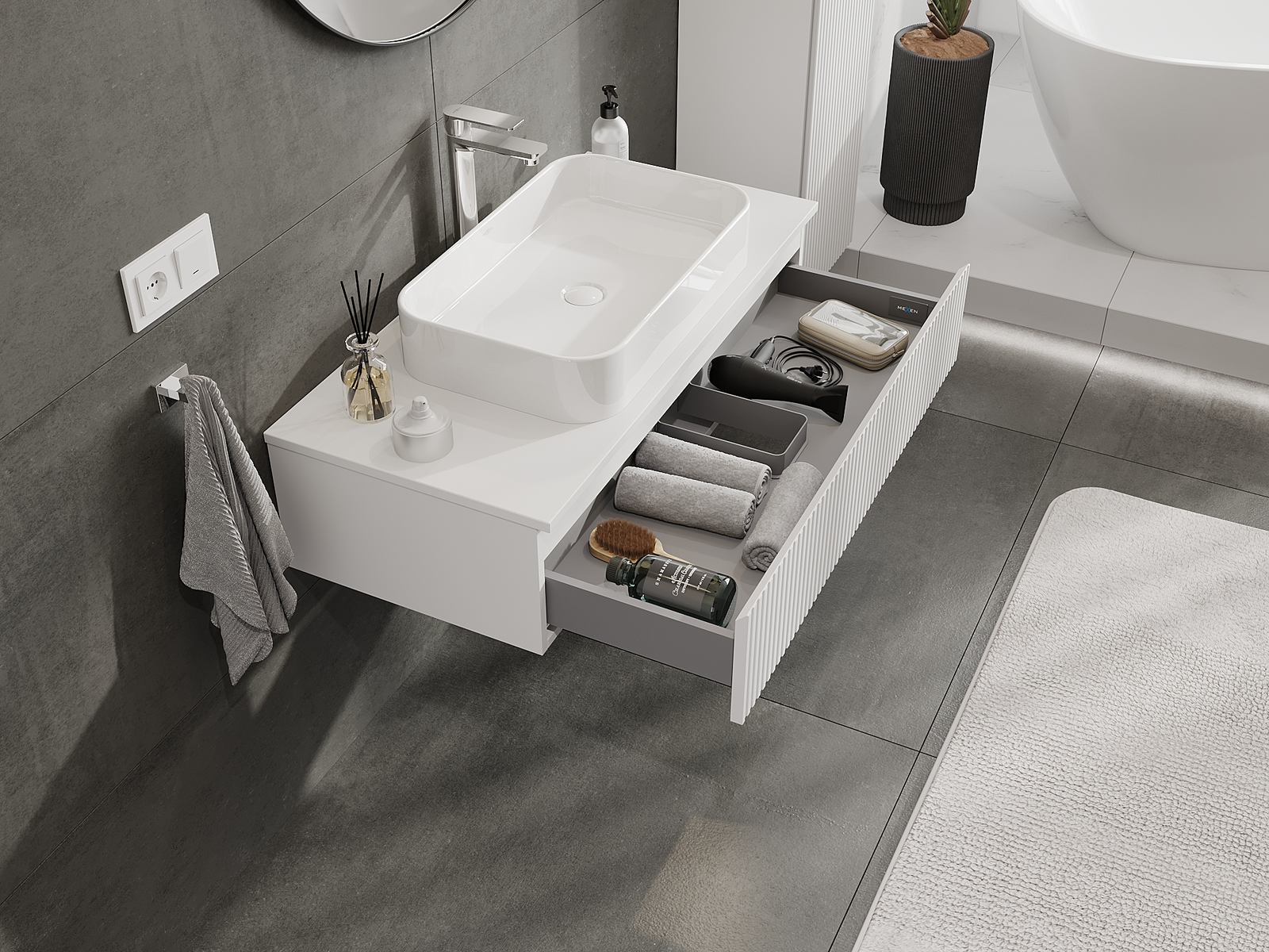 Mexen Rivel Badezimmerschrank 100 cm, 1 Schublade, gerillt, weiß matt - 91A20-10023-1-BF01