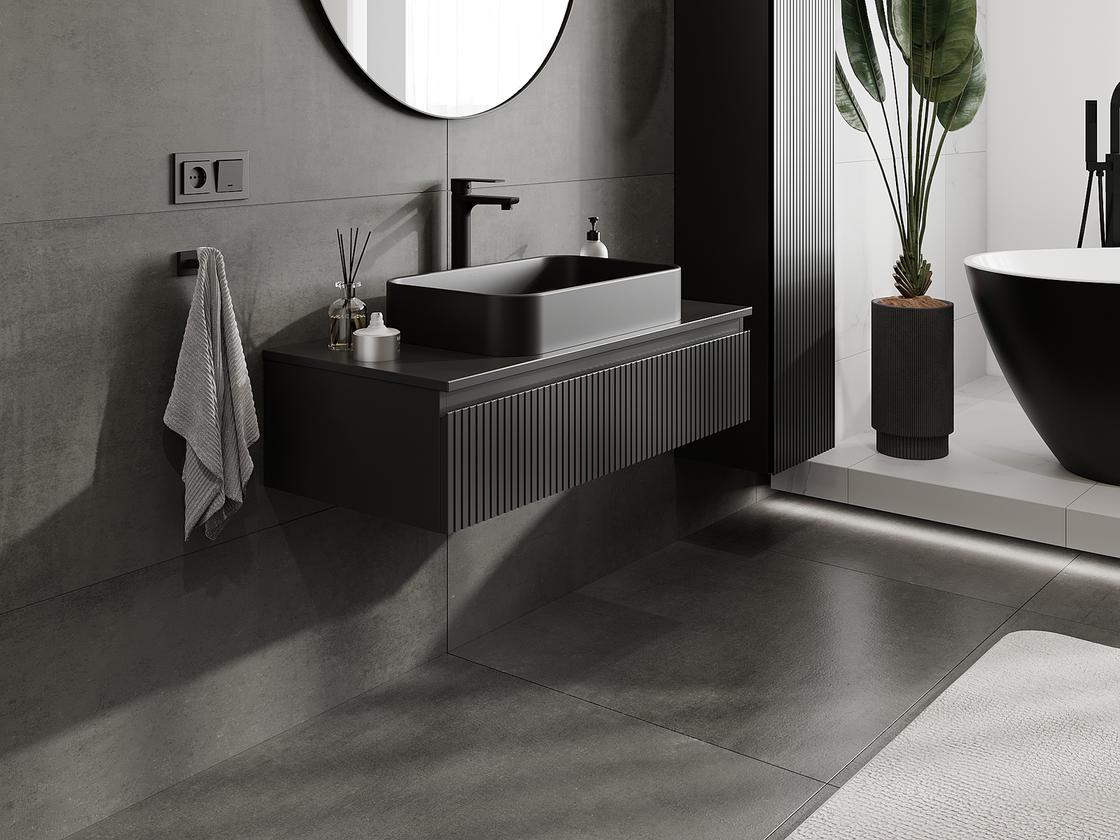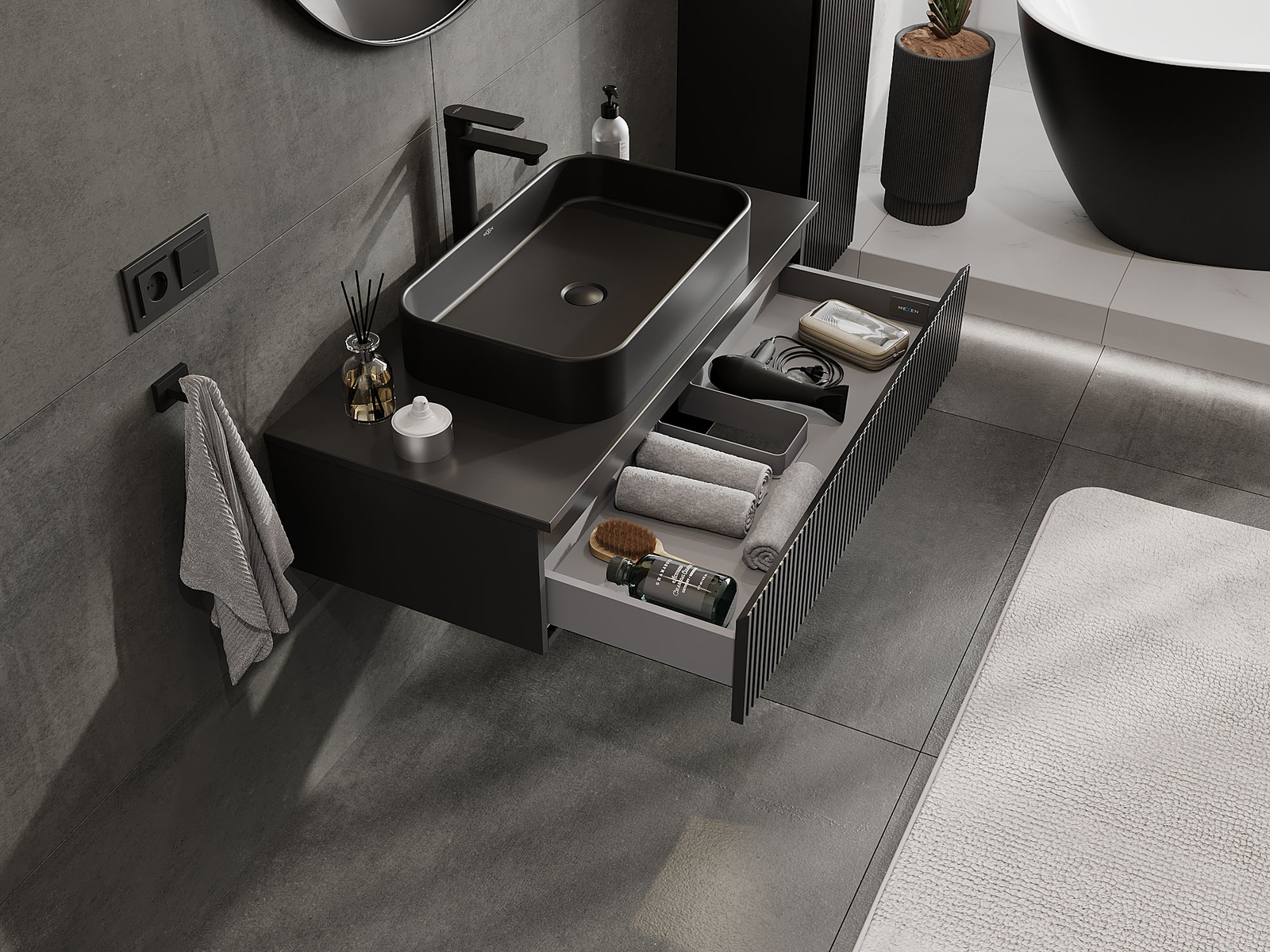 Mexen Rivel Badezimmerschrank für Waschtisch 100 cm, 1 Schublade, gerillt, schwarz matt - 91A20-10023-1-BF71