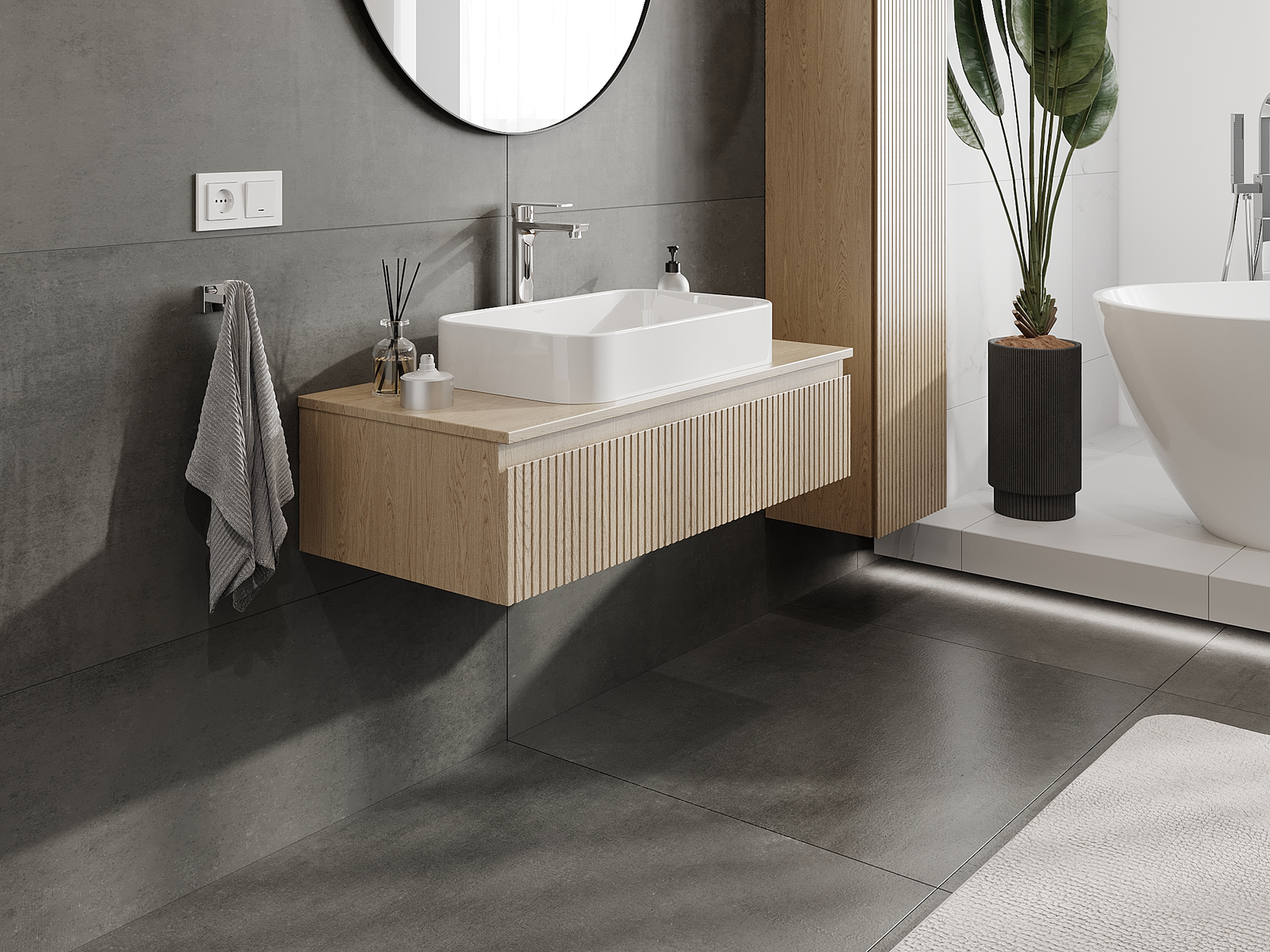 Mexen Rivel Badezimmerschrank unter dem Waschbecken 100 cm, 1 Schublade, geriffelt, Eiche - 91A20-10023-1-BF81