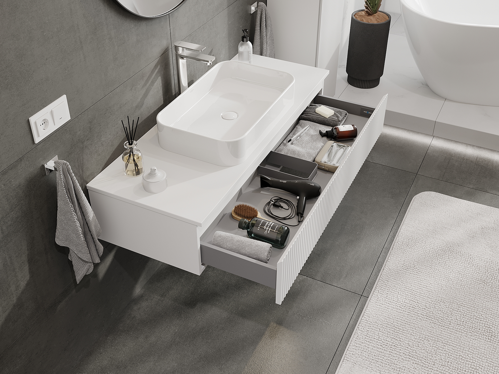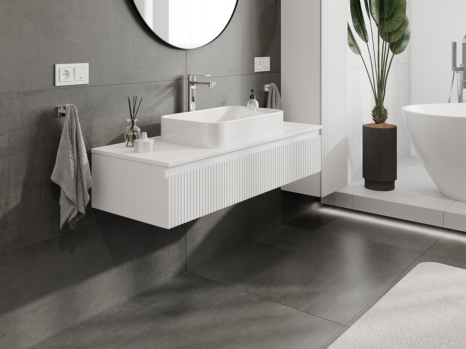 Mexen Rivel Badezimmerschrank unter Waschbecken 120 cm, 1 Schublade, geriffelt, weiß matt - 91A20-12023-1-BF01