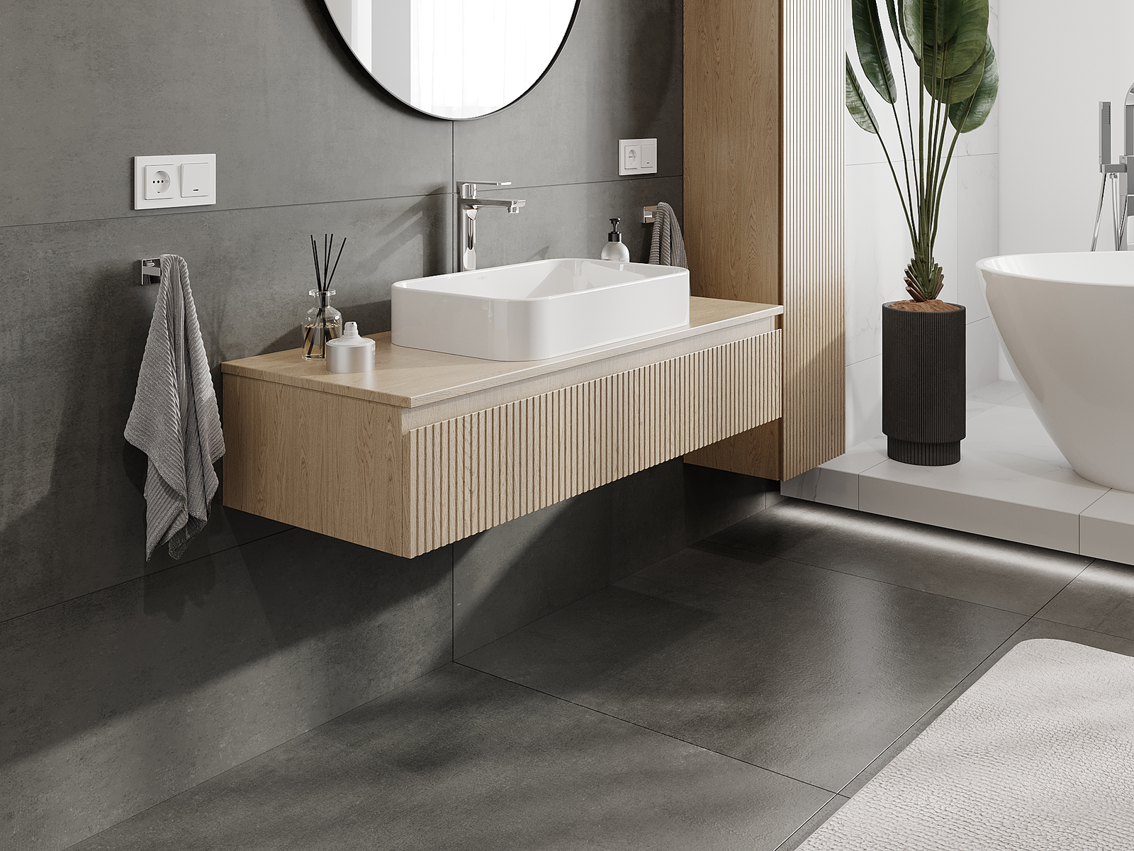 Mexen Rivel Badezimmerschrank für Waschbecken 120 cm, 1 Schublade, gerillt, Eiche - 91A20-12023-1-BF81