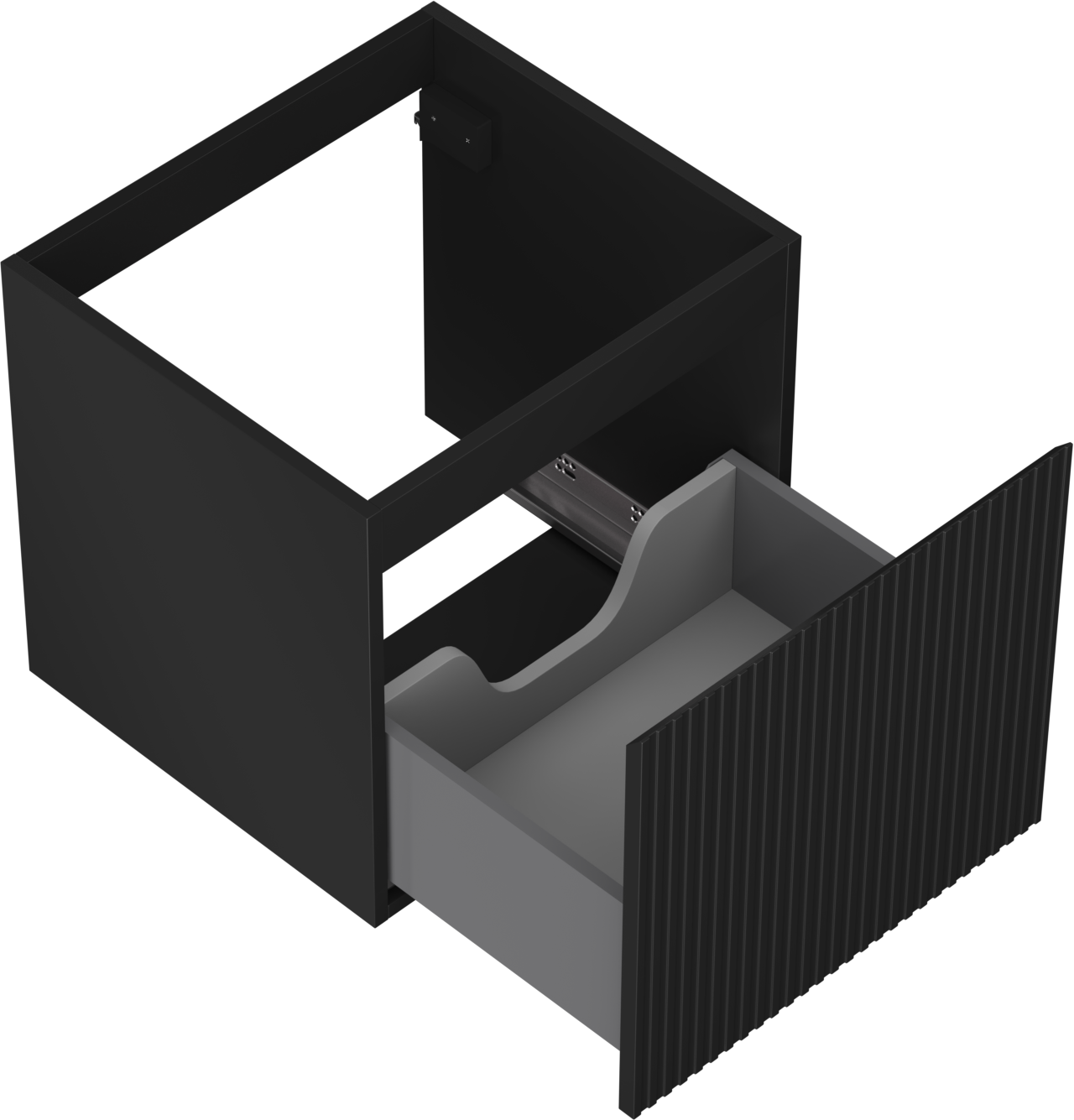 Der Ausschnitt in der Schublade ist für die Aufnahme eines Siphons ausgelegt, der für die Installation von Waschbecken unerlässlich ist. Dadurch kann das Möbelstück voll funktionsfähig installiert werden, ohne dass für die Installation Schubladenplatz geopfert werden muss.