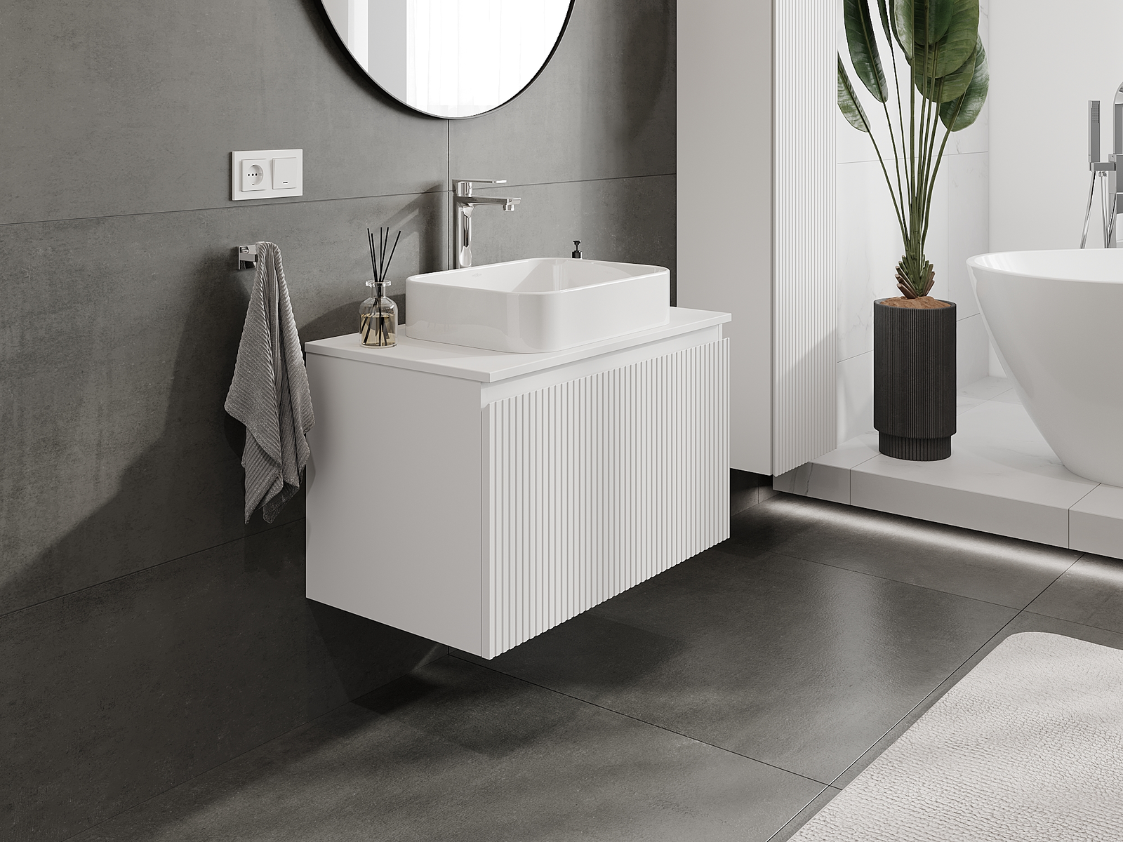 Unsere modularen Badezimmermöbel können in verschiedenen Farbkonfigurationen miteinander kombiniert werden, wodurch eine vollständige Personalisierung ermöglicht wird. Man kann sowohl das Aussehen als auch die Funktionen der einzelnen Elemente auswählen, was es erlaubt, die Möbel an eigene stilistische und funktionale Vorlieben anzupassen.