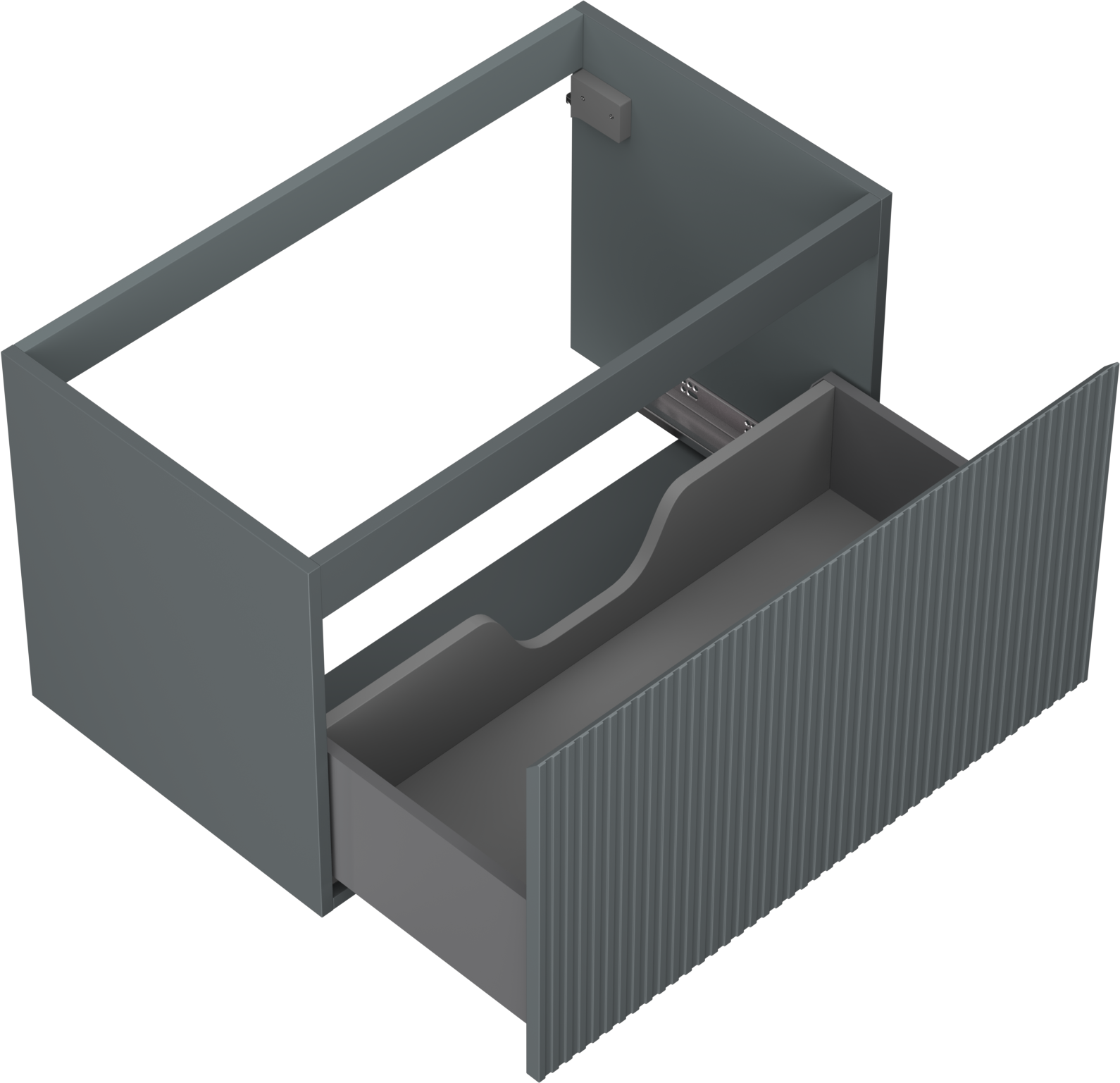 Der Ausschnitt in der Schublade ist so gestaltet, dass er den Siphon aufnehmen kann, der für Waschbeckeninstallationen erforderlich ist. Dadurch kann das Möbelstück voll funktionsfähig montiert werden, ohne auf den Platz in der Schublade zugunsten der Installation verzichten zu müssen.