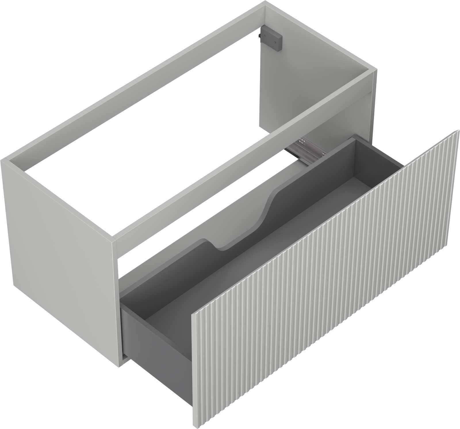 Der Ausschnitt in der Schublade ist so gestaltet, dass er den Siphon aufnehmen kann, der für Waschbeckeninstallationen erforderlich ist. Dadurch kann das Möbelstück voll funktionsfähig montiert werden, ohne auf den Platz in der Schublade zugunsten der Installation verzichten zu müssen.