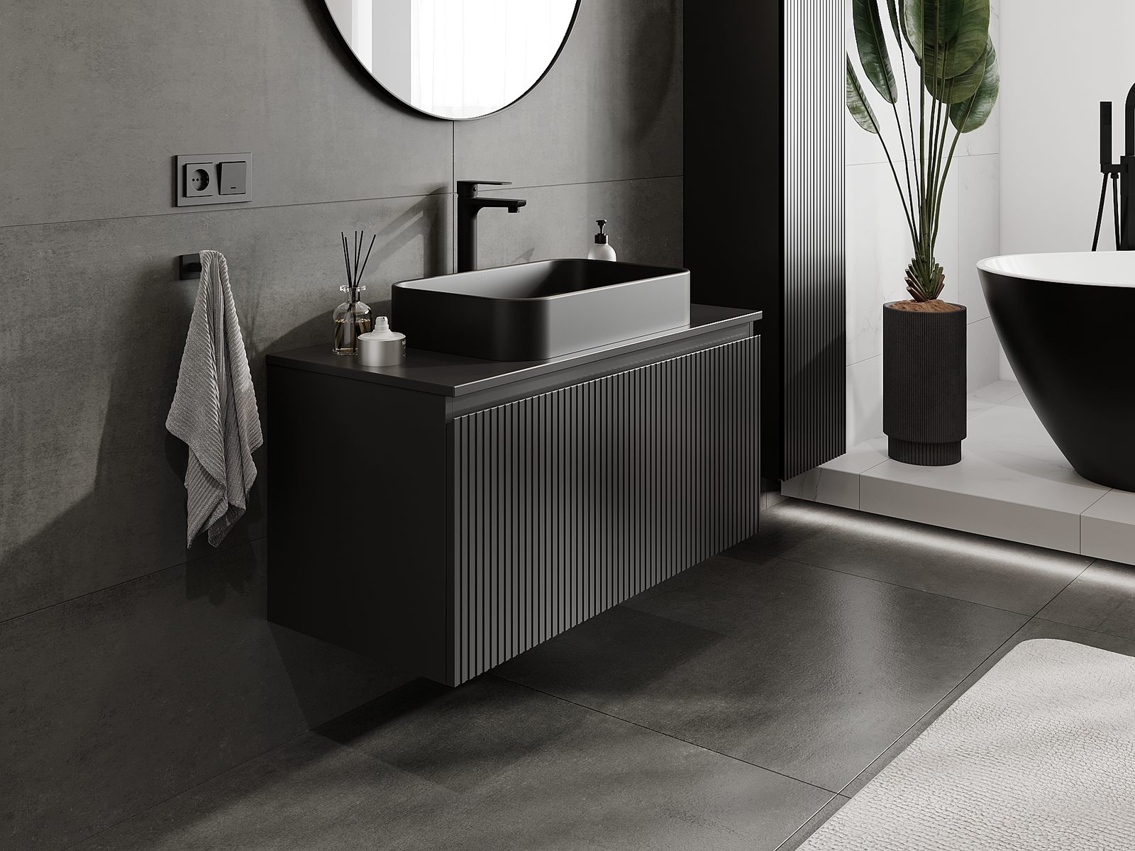 Unsere modularen Badezimmermöbel können in verschiedenen Farbkonfigurationen miteinander kombiniert werden, wodurch eine vollständige Personalisierung ermöglicht wird. Man kann sowohl das Aussehen als auch die Funktionen der einzelnen Elemente auswählen, was es erlaubt, die Möbel an eigene stilistische und funktionale Vorlieben anzupassen.