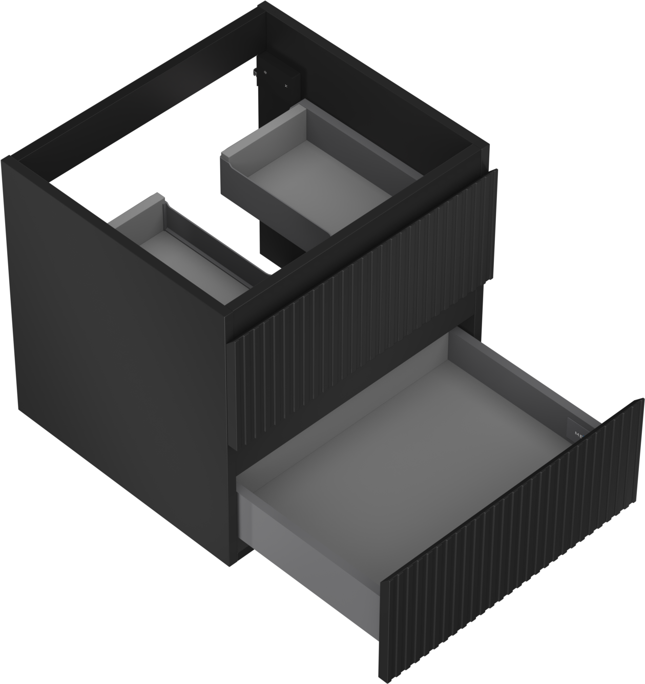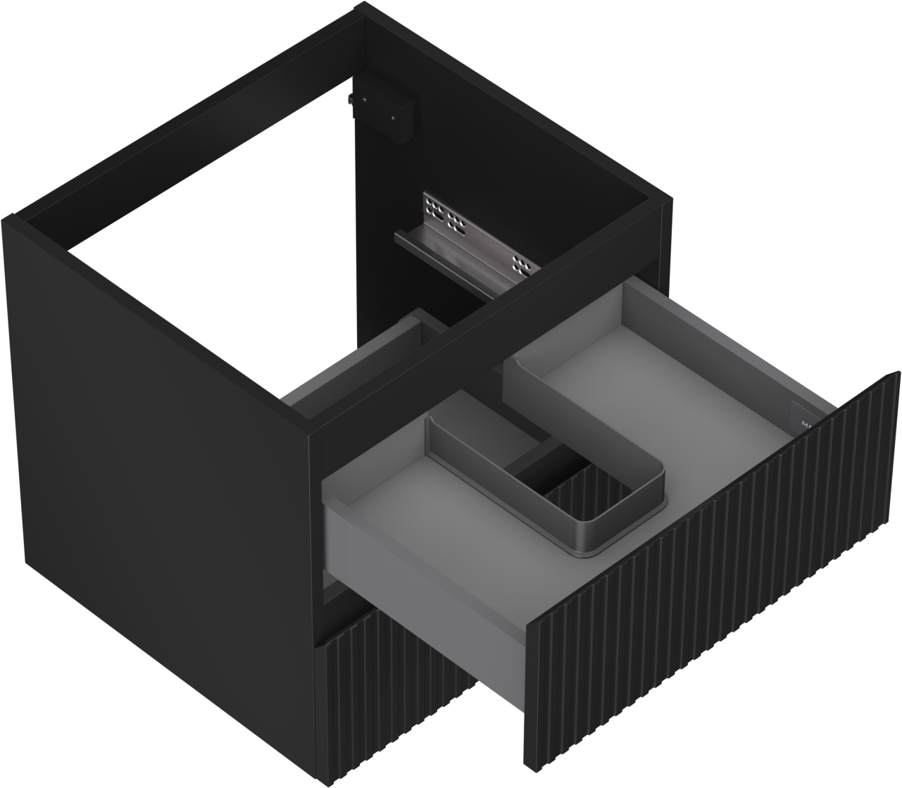 Der Ausschnitt in der Schublade ist für die Aufnahme eines Siphons ausgelegt, der für die Installation von Waschbecken unerlässlich ist. Dadurch kann das Möbelstück voll funktionsfähig installiert werden, ohne dass für die Installation Schubladenplatz geopfert werden muss.