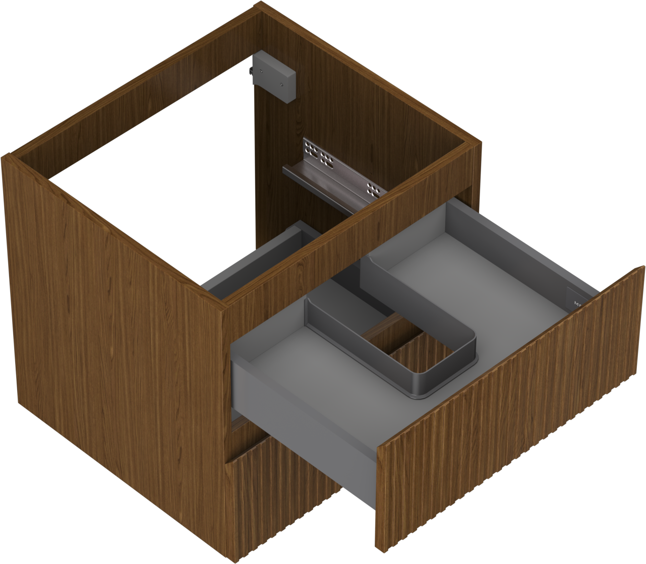 Der Ausschnitt in der Schublade ist für die Aufnahme eines Siphons ausgelegt, der für die Installation von Waschbecken unerlässlich ist. Dadurch kann das Möbelstück voll funktionsfähig installiert werden, ohne dass für die Installation Schubladenplatz geopfert werden muss.