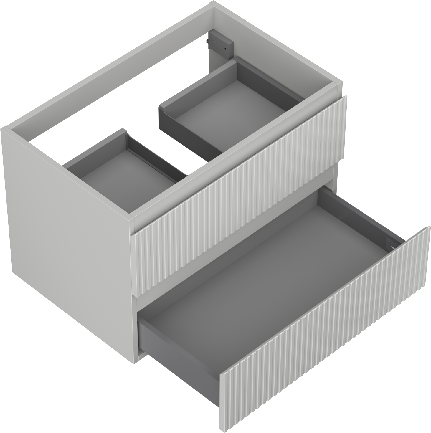 Der Ausschnitt in der Schublade ist so gestaltet, dass er den Siphon aufnehmen kann, der für Waschbeckeninstallationen erforderlich ist. Dadurch kann das Möbelstück voll funktionsfähig montiert werden, ohne auf den Platz in der Schublade zugunsten der Installation verzichten zu müssen.