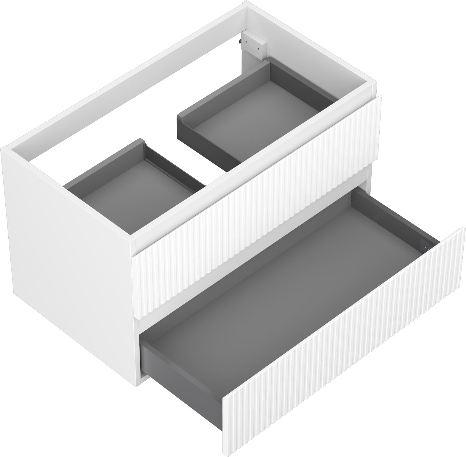 Der Ausschnitt in der Schublade ist für die Aufnahme eines Siphons ausgelegt, der für die Installation von Waschbecken unerlässlich ist. Dadurch kann das Möbelstück voll funktionsfähig installiert werden, ohne dass für die Installation Schubladenplatz geopfert werden muss.