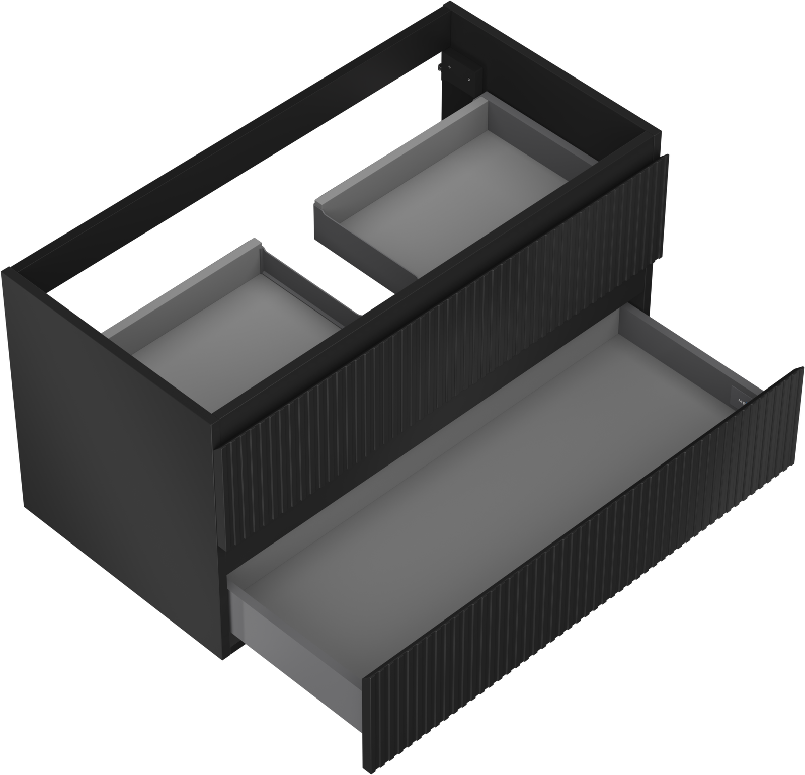 Der Ausschnitt in der Schublade ist für die Aufnahme eines Siphons ausgelegt, der für die Installation von Waschbecken unerlässlich ist. Dadurch kann das Möbelstück voll funktionsfähig installiert werden, ohne dass für die Installation Schubladenplatz geopfert werden muss.