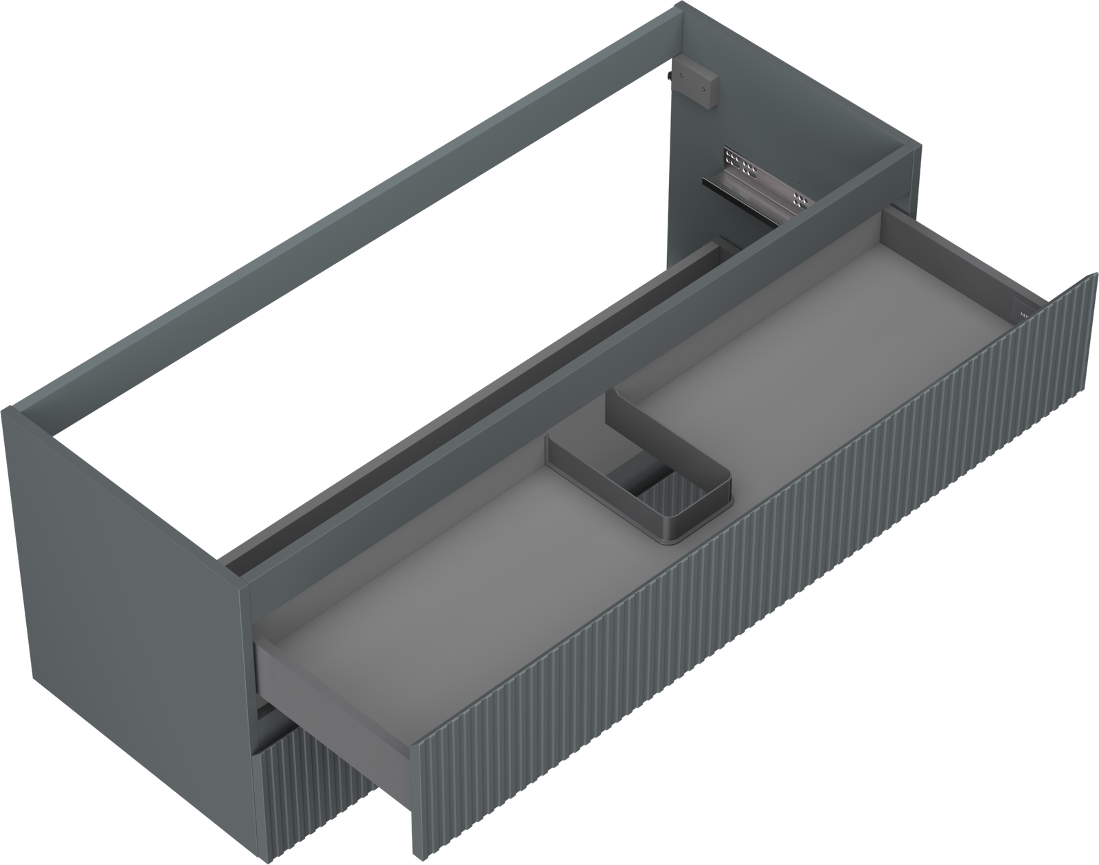 Der Ausschnitt in der Schublade ist so gestaltet, dass er den Siphon aufnehmen kann, der für Waschbeckeninstallationen erforderlich ist. Dadurch kann das Möbelstück voll funktionsfähig montiert werden, ohne auf den Platz in der Schublade zugunsten der Installation verzichten zu müssen.