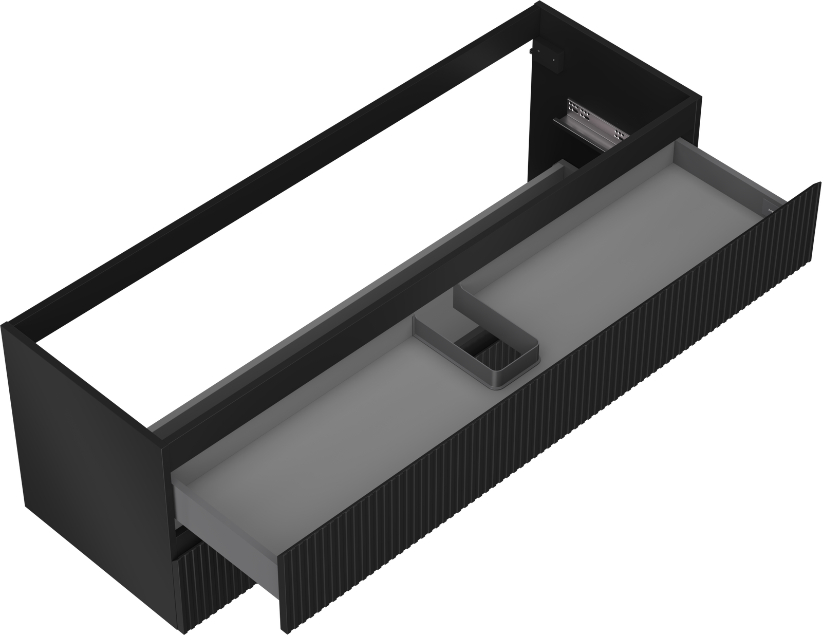 Der Ausschnitt in der Schublade ist für die Aufnahme eines Siphons ausgelegt, der für die Installation von Waschbecken unerlässlich ist. Dadurch kann das Möbelstück voll funktionsfähig installiert werden, ohne dass für die Installation Schubladenplatz geopfert werden muss.