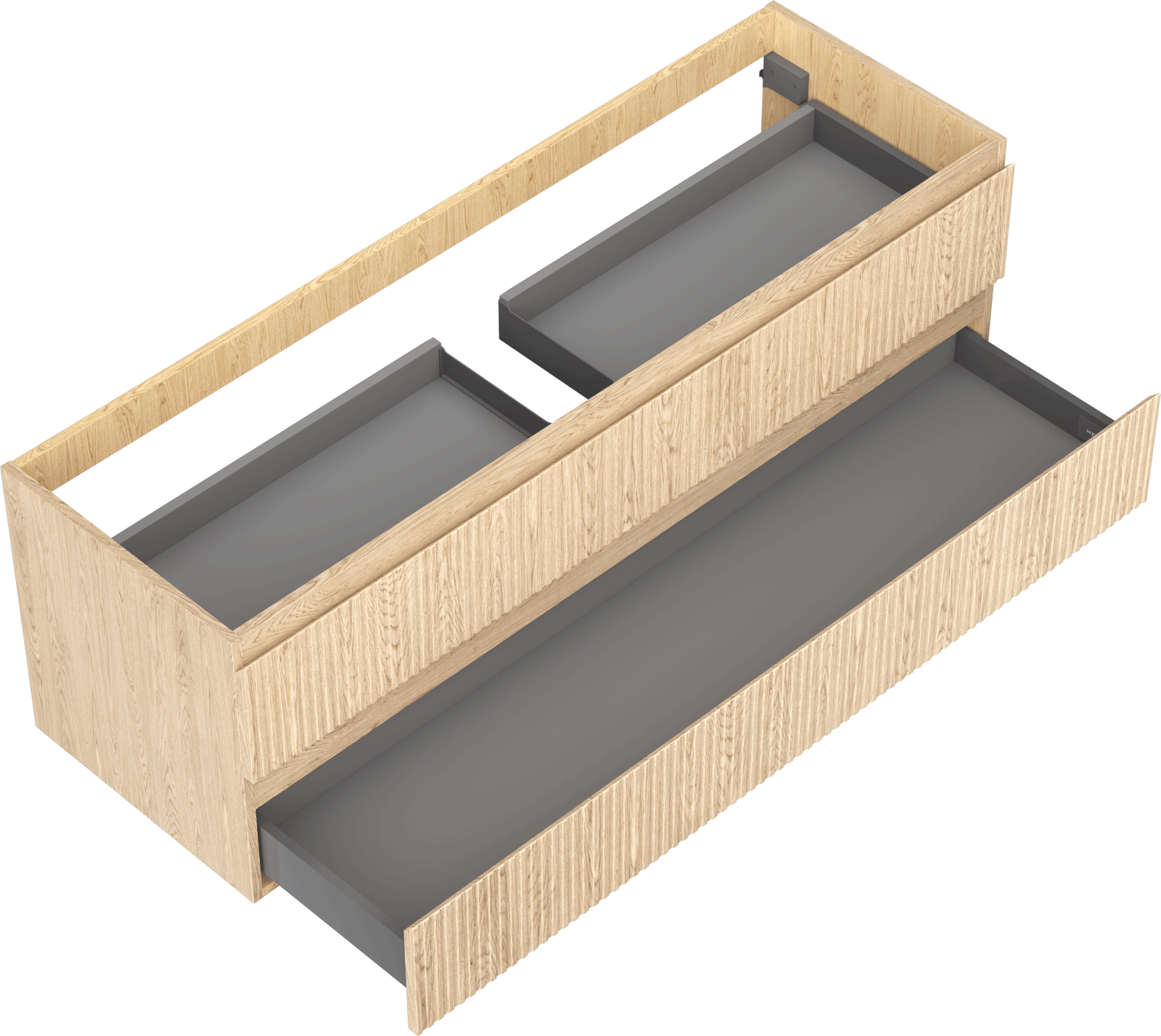 Mexen Rivel Badezimmerschrank für Waschbecken 140 cm, 2 Schubladen, gerillt, Eiche - 91A20-14047-2-BFF81