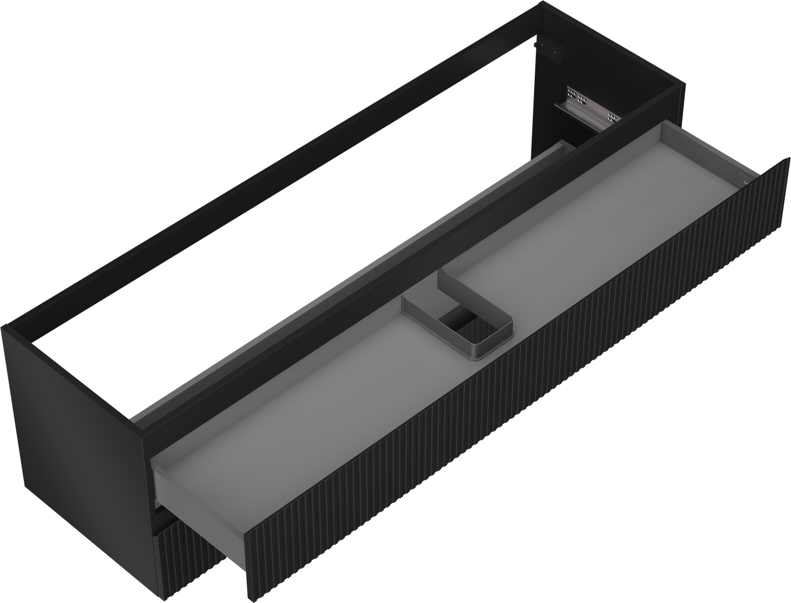Der Ausschnitt in der Schublade ist für die Aufnahme eines Siphons ausgelegt, der für die Installation von Waschbecken unerlässlich ist. Dadurch kann das Möbelstück voll funktionsfähig installiert werden, ohne dass für die Installation Schubladenplatz geopfert werden muss.