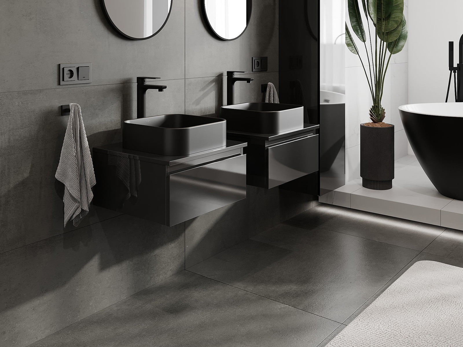 Unsere modularen Badezimmermöbel können in verschiedenen Farbkonfigurationen miteinander kombiniert werden, wodurch eine vollständige Personalisierung ermöglicht wird. Man kann sowohl das Aussehen als auch die Funktionen der einzelnen Elemente auswählen, was es erlaubt, die Möbel an eigene stilistische und funktionale Vorlieben anzupassen.